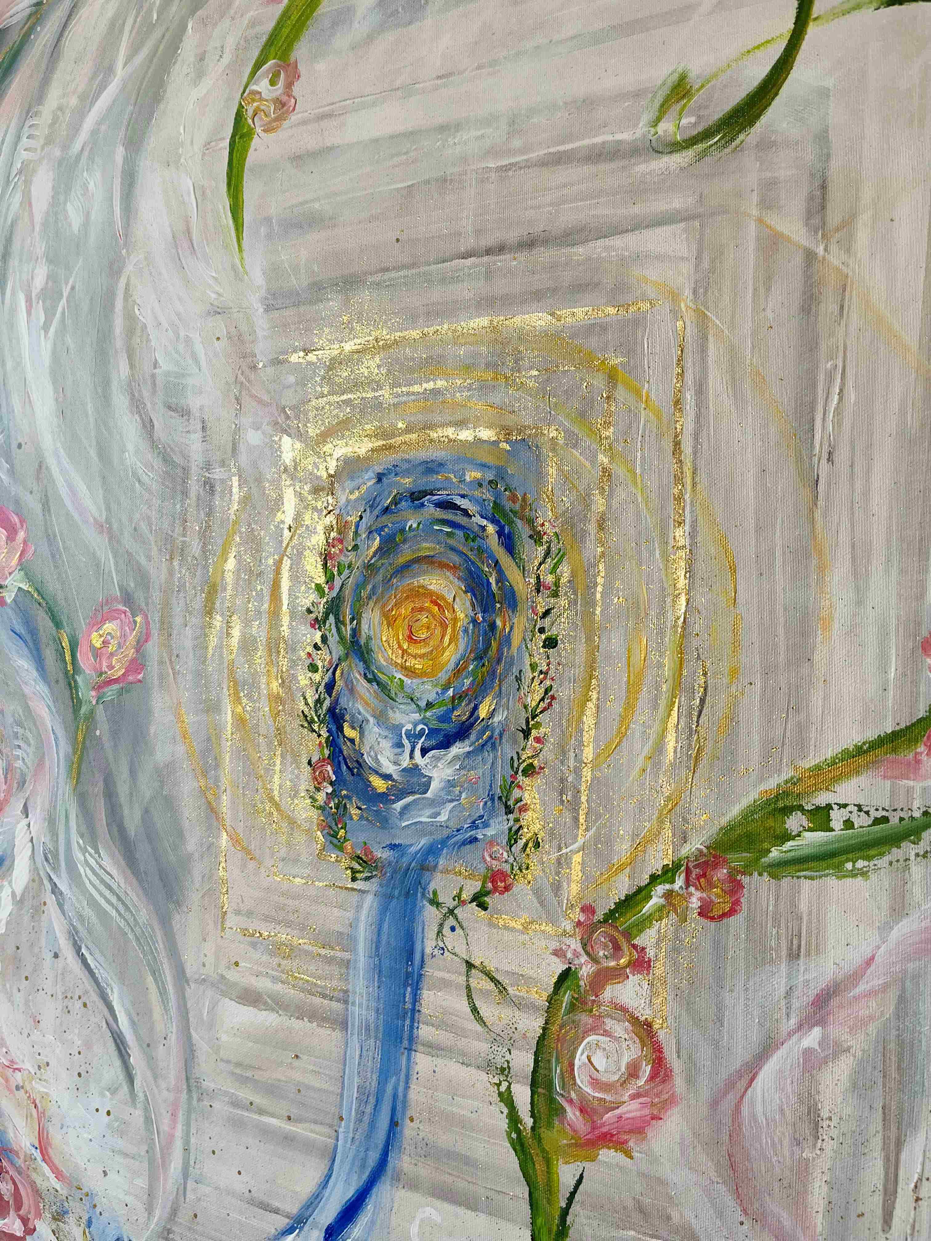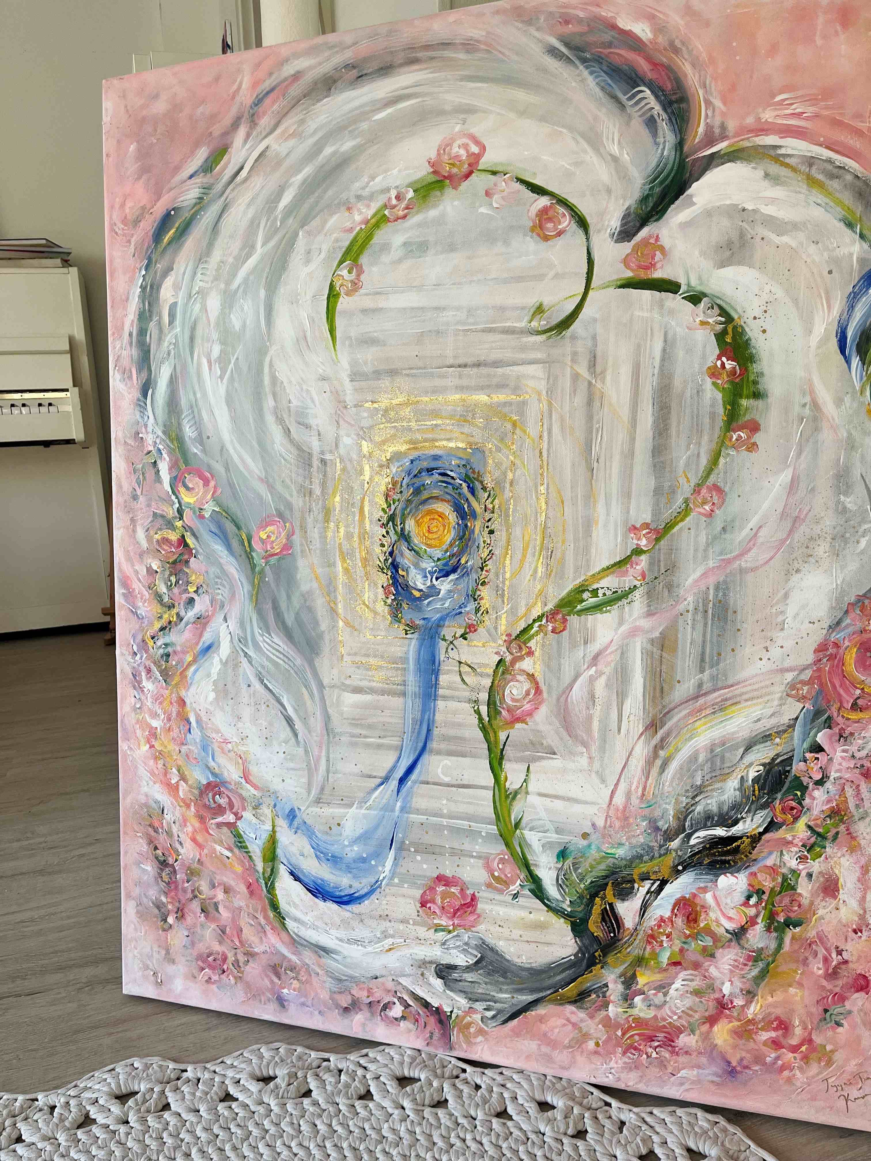 Taideteos kutsuu paikkaan jossa voit tunnistaa pyyteettömän rakkauden voiman, joka ei vaadi mitään vastineeksi. Rakkaus vain on. Mitä tapahtuu, kun valitset astua tuosta ovesta sisään? Teoksen myötä voit toivottaa rakkauden tervetulleeksi jokaiseen elämäsi hetkeen.