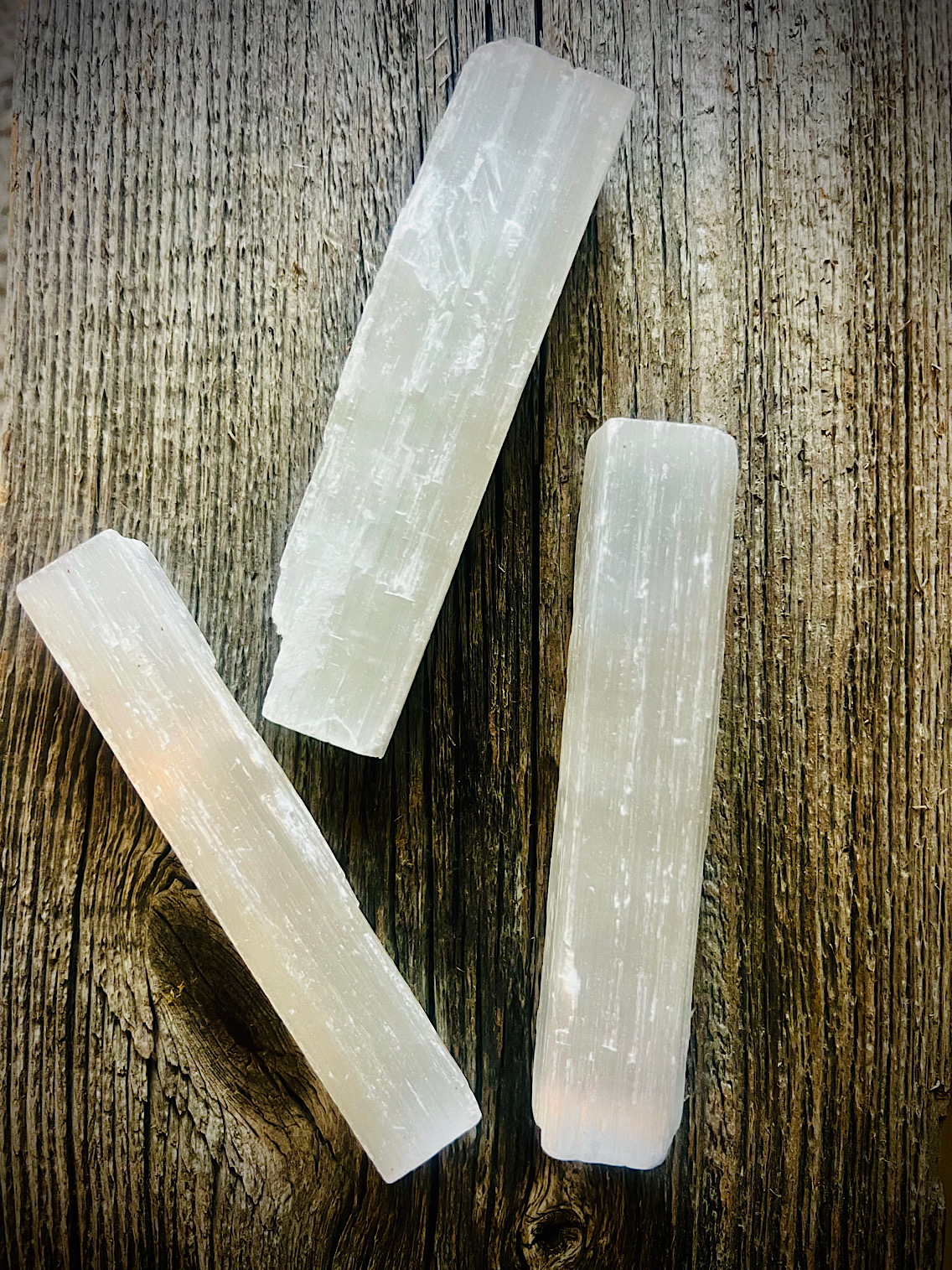 Seleeniitti on hyvin hienovärähteinen selkeyttä tuova kristalli, joka avaa kruunuchakraa ja yhteyttä enkelikuntaan. Se edistää korkeamman tietoisuuden ohjauksen havaitsemista ja sillä on syvä rauhoittava vaikutus. Seleniittitorni on oivallinen tilanpuhdistaja ja suojelija kotiin tai huoneeseen. Seleniitti tuo pintaan alitajunnan liikehdintää. Sauvojen pituus n. 10 cm.