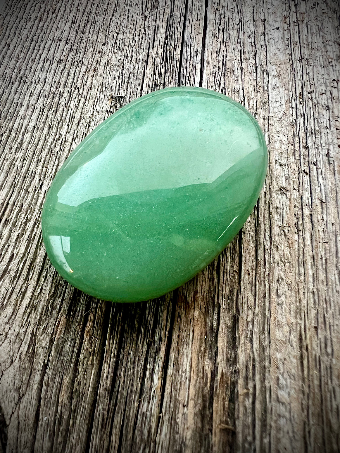 Vihreä aventuriini on sydämen lempeä parantaja, harmonisoija ja suojelija. Se rauhoittaa tunnekehoa, hajottaa tehokkaasti negatiivisia ajatusmalleja ja tunteita. Tukee ja kohottaa itsenäistymistä sekä lisää eritoten sydämen hyvinvointia. Paino 111 g.
