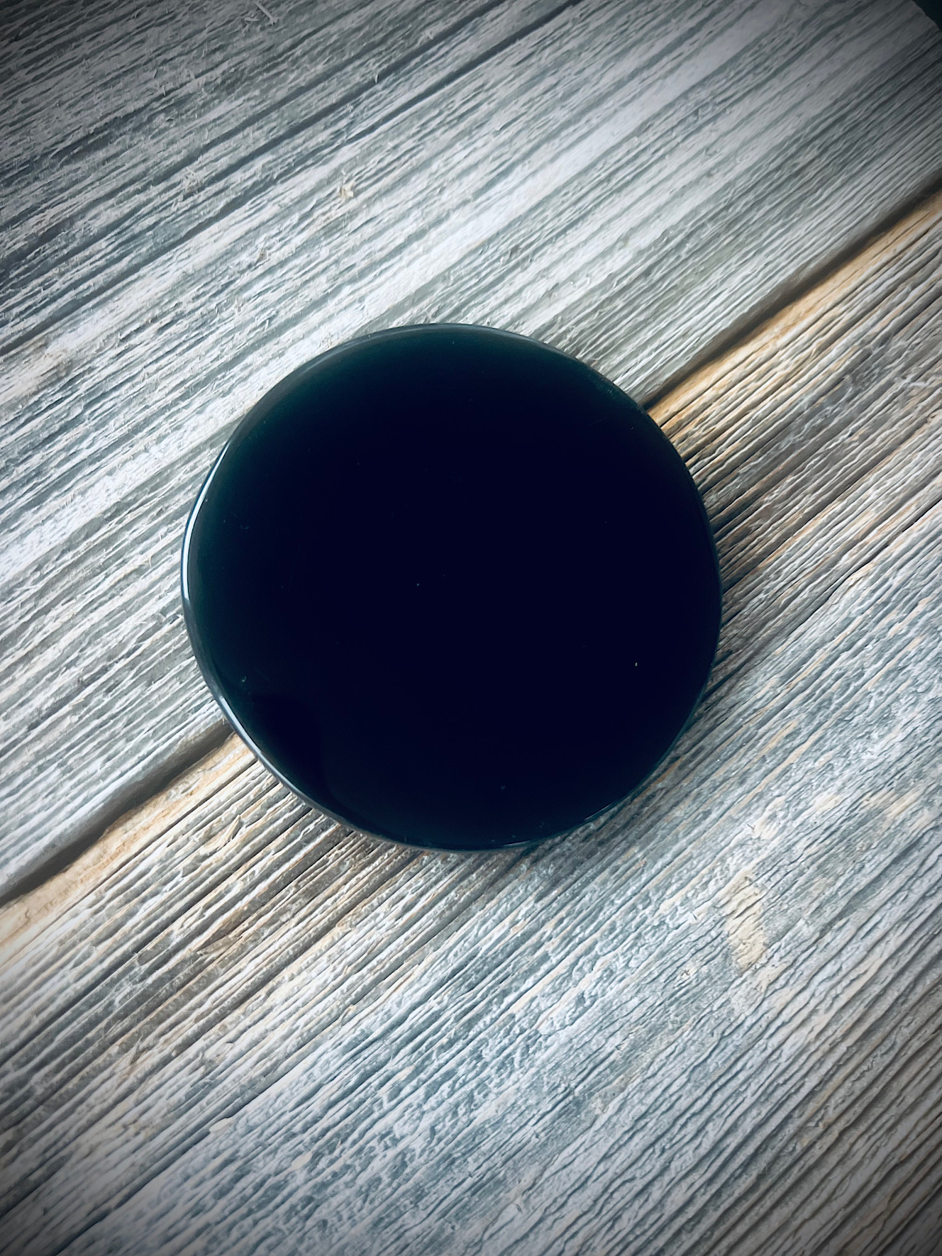 Sulaneesta laavasta ilman kristalloitumista syntynyt obsidiaani on voimakkaan ja nopean toiminnan apuri. Siltä mikään ei jää paljastumatta. Se on voimakas suojelija, juurruuttaja ja negatiivisten energiablokkien poistaja. Pallon muoto mahdollistaa tasaisen energian säteilyn joka suuntaan. Peilin halkaisija on 8 cm.