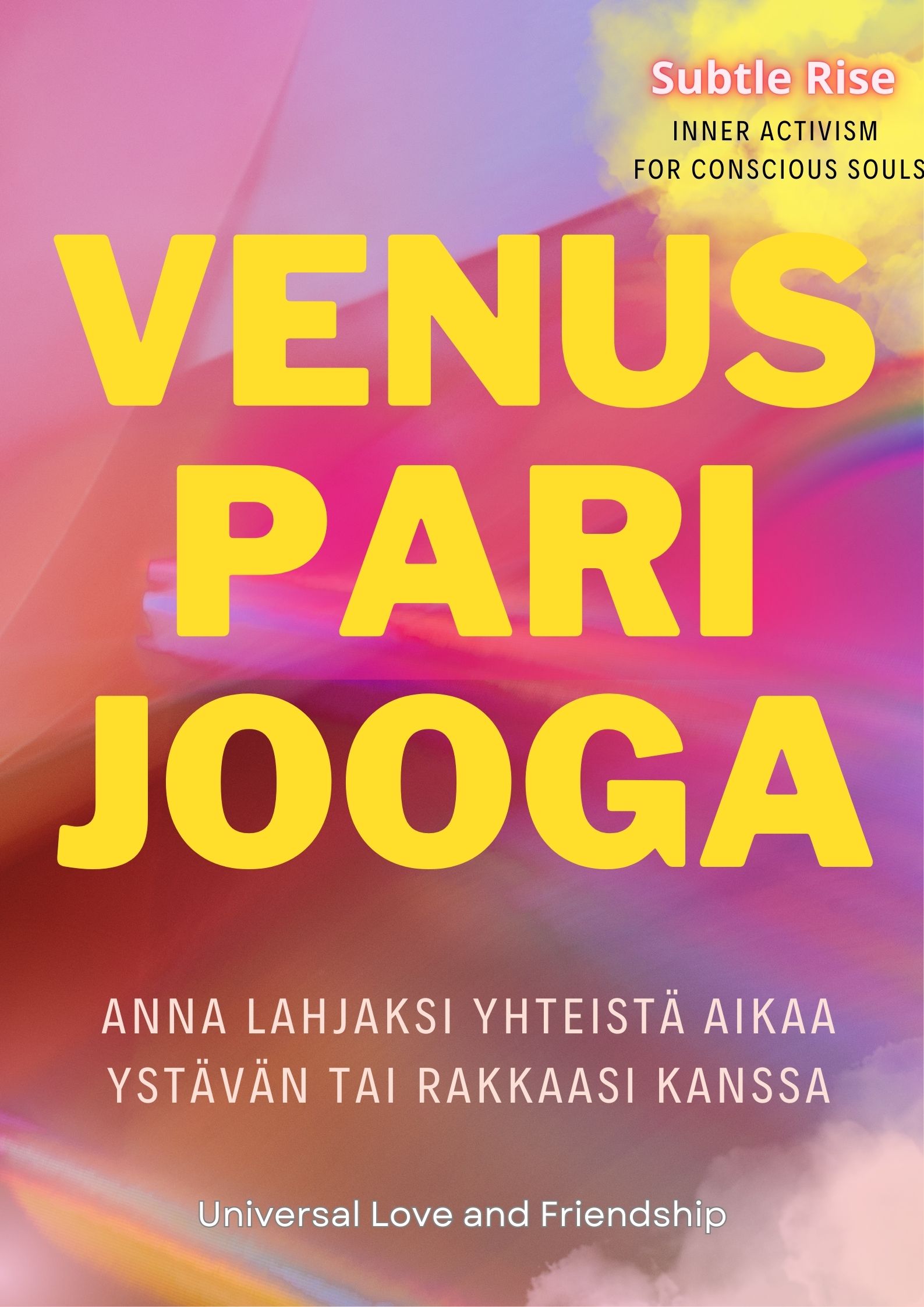 Huomioi, että Venus parijooga ei ole hikitreeniä eikä tantraa, vaan fyysisesti lempeää ja henkisesti merkityksellistä yhdessäoloa helposti omaksuttavien asentojen kautta.
