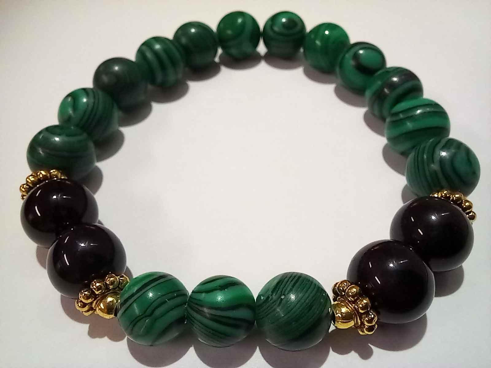 Käsintehty vihreä malakiitti -rannekorumme voi tuoda mukanaan syvää rauhaa ja yhteyttä korkeampiin tietoihin.