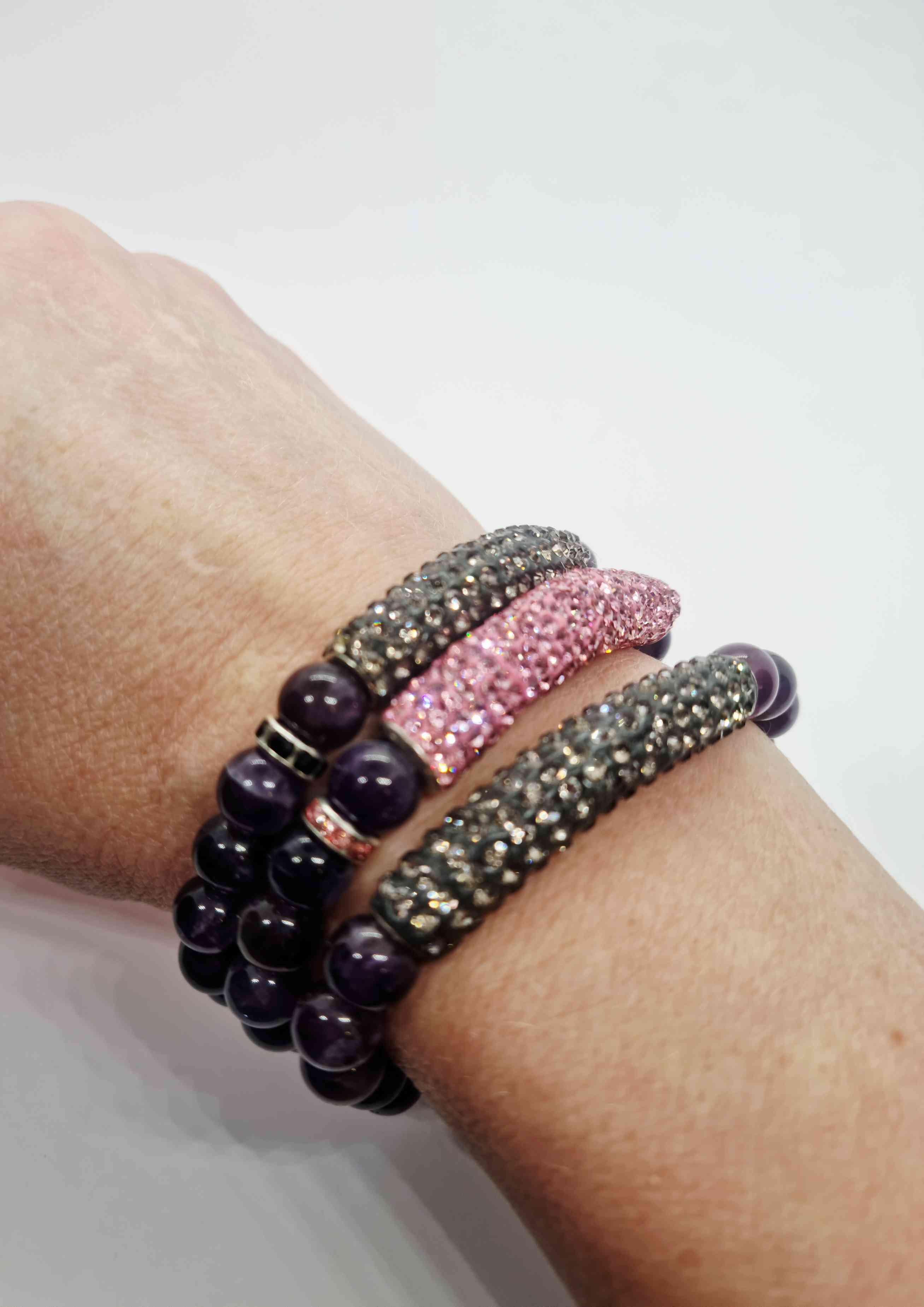 Ametisti on violetti kvartsilaji, jonka energia tunnetaan harmonisoivana ja rauhoittavana. Se liitetään usein henkisyyteen, intuitioon ja mielen selkeyteen.