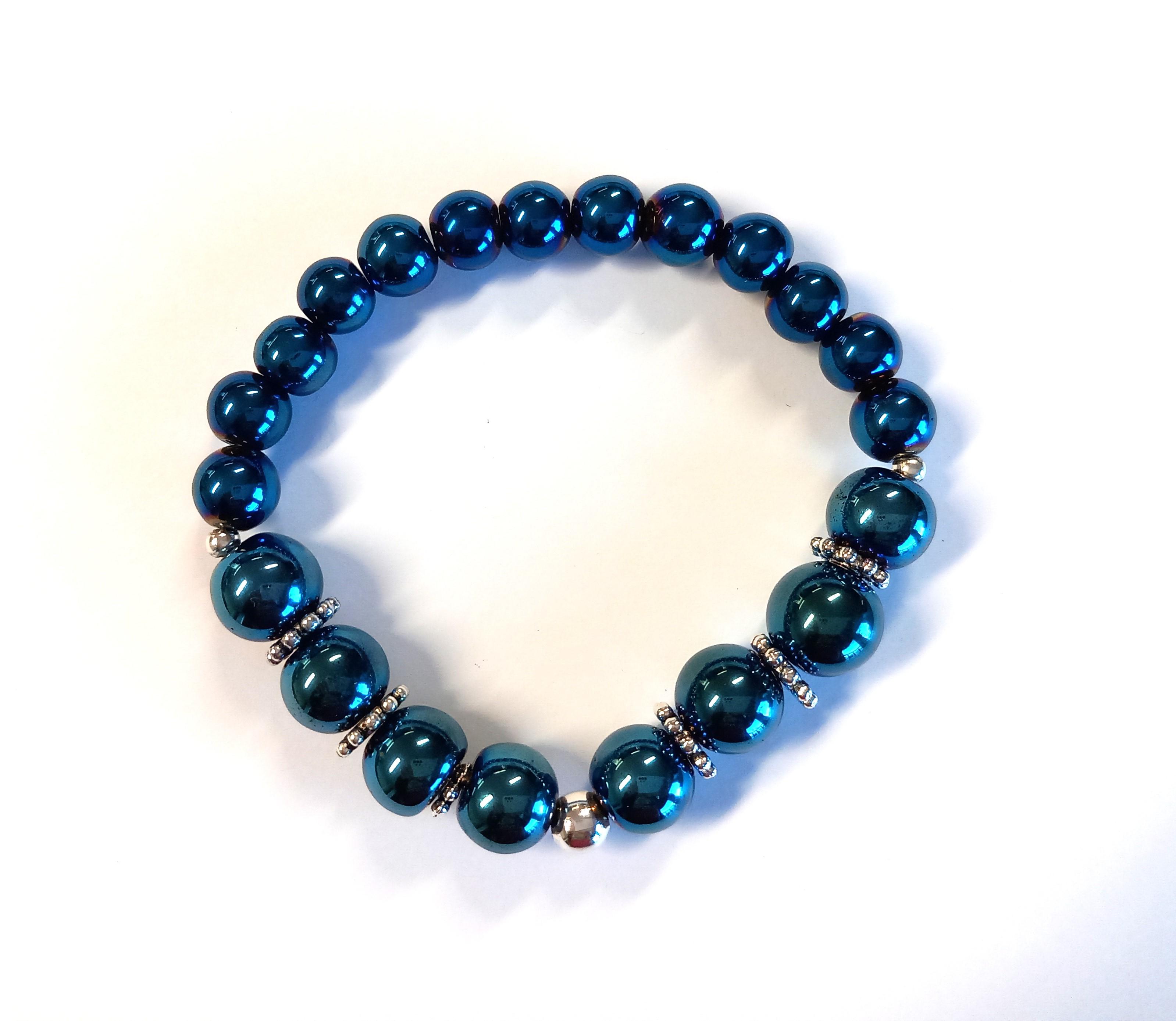 Värjätty hematiitti 8-10mm, kuminauha, korumetalli