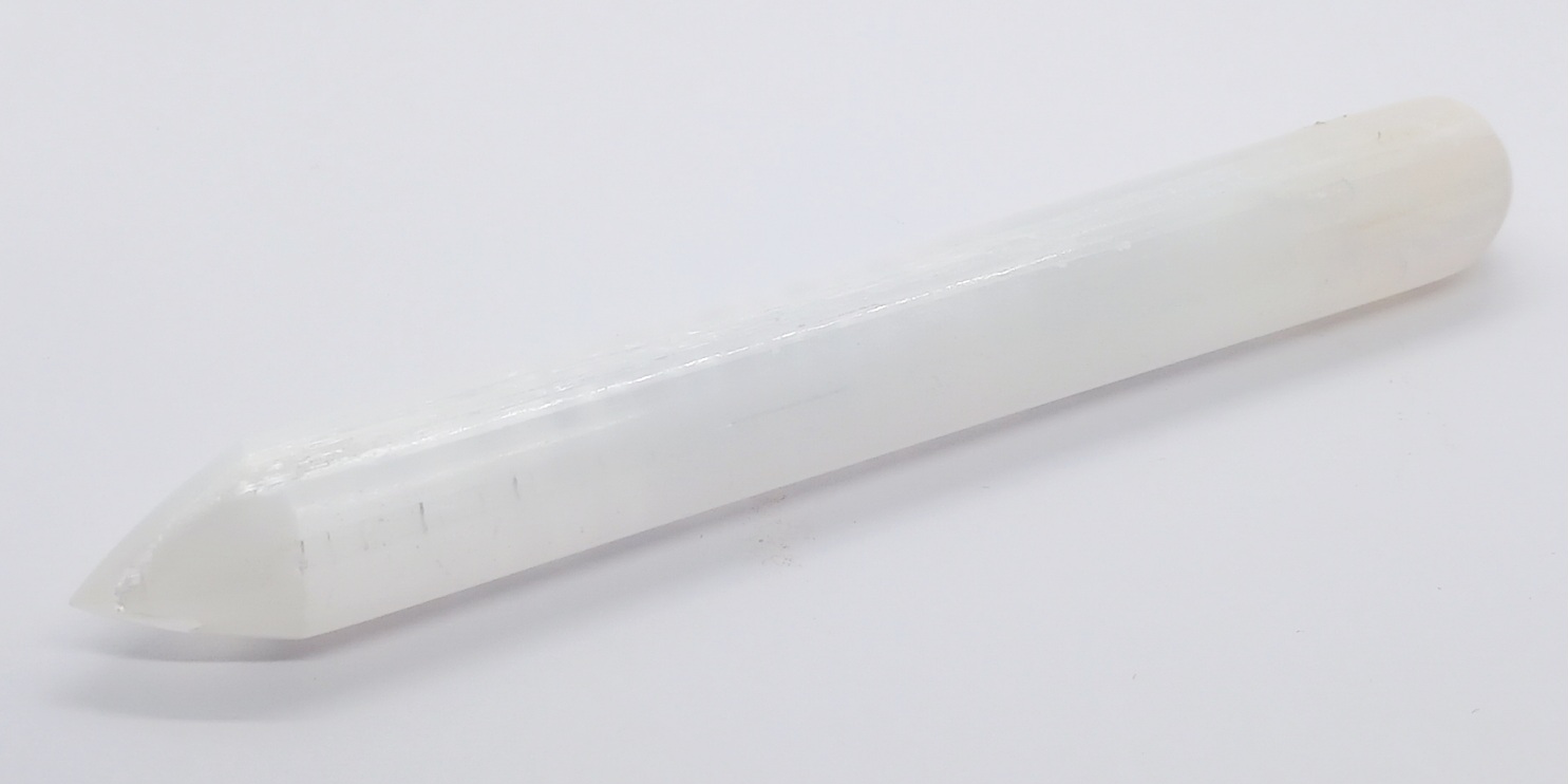 Käyttövinkki: Pidä seleniittiä lähellä nukkumista — esimerkiksi ikkunalaudalla tai yöpöydällä — jotta kuunvalo voi loistaa sen läpi. Käytä meditaatiossa kruunuchakran kohdalla tai ylävartalolla, kun haluat selkeyttää ajatuksia.