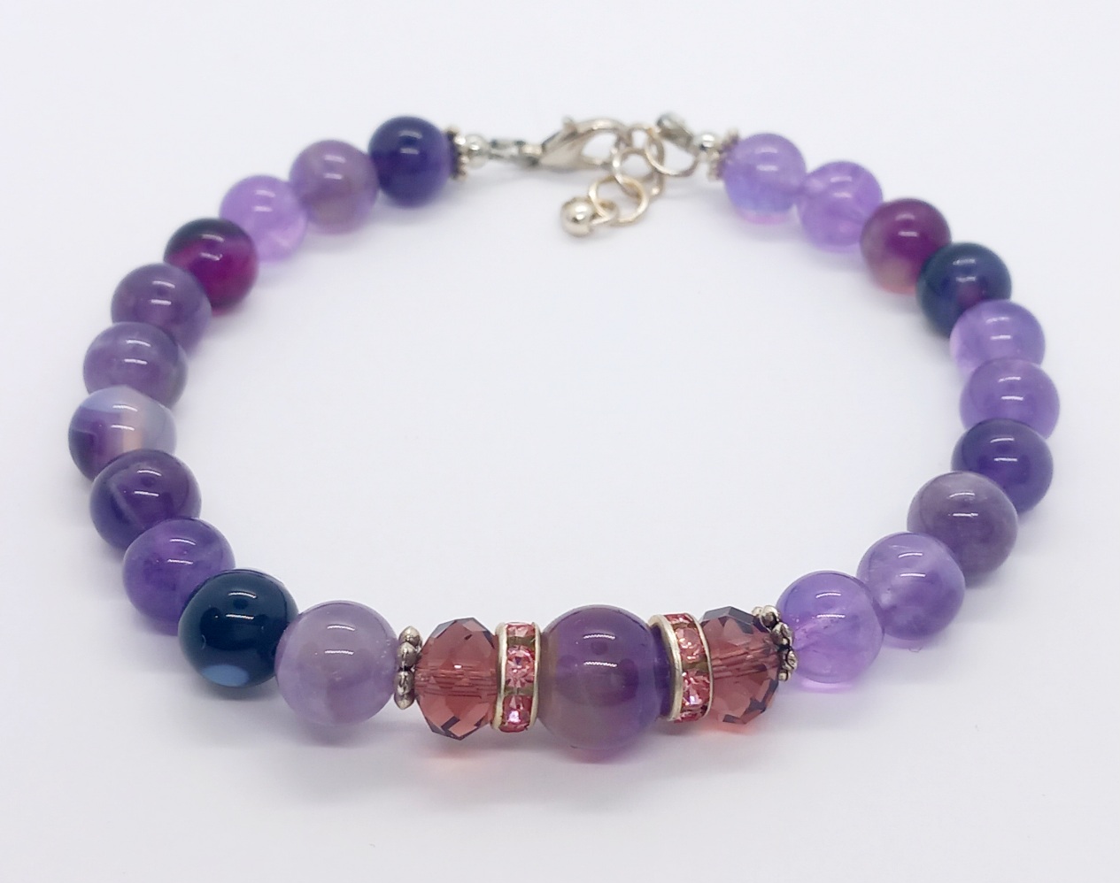 Käsintehty chevron ametisti -rannekorumme voi toimia muistutuksena siitä, että selkeys ja sisäinen visio voivat ohjata sinua myös hämärien hetkien yli.