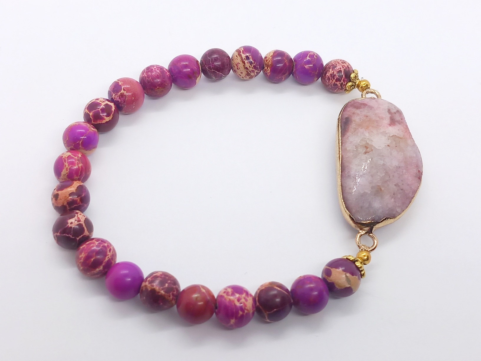 Käsintehty purppuranpunainen Imperial Jasper -rannekorumme voi tuoda mukanaan sekä itseluottamusta että syvästi juurtunutta rauhaa.