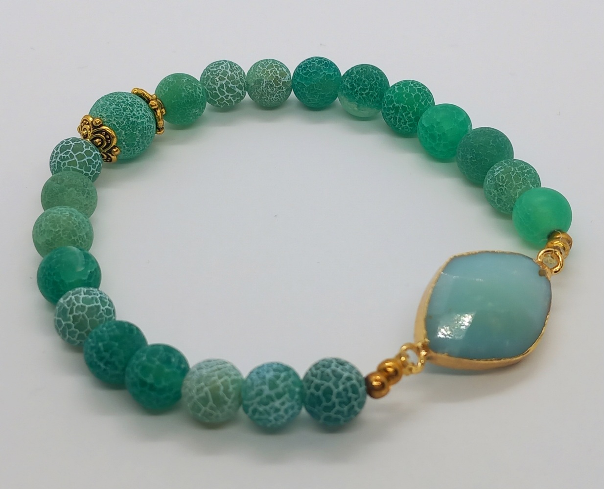 Vihreä hyrresärö akaatti & Amasoniitti rannekoru, 18cm