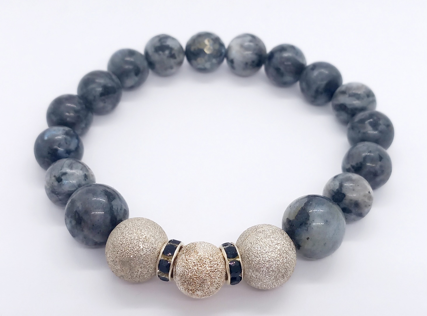 Kuminauha, labradoriitti 8-10mm, korumetalli