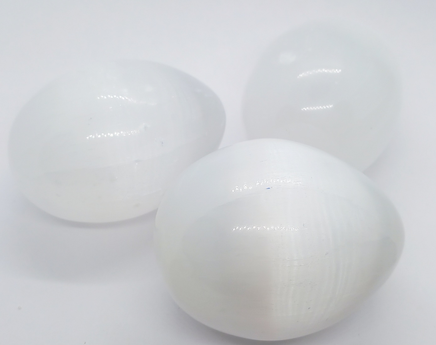 Käyttövinkki: Pidä seleniittiä lähellä nukkumista — esimerkiksi ikkunalaudalla tai yöpöydällä — jotta kuunvalo voi loistaa sen läpi. Käytä meditaatiossa kruunuchakran kohdalla tai ylävartalolla, kun haluat selkeyttää ajatuksia.