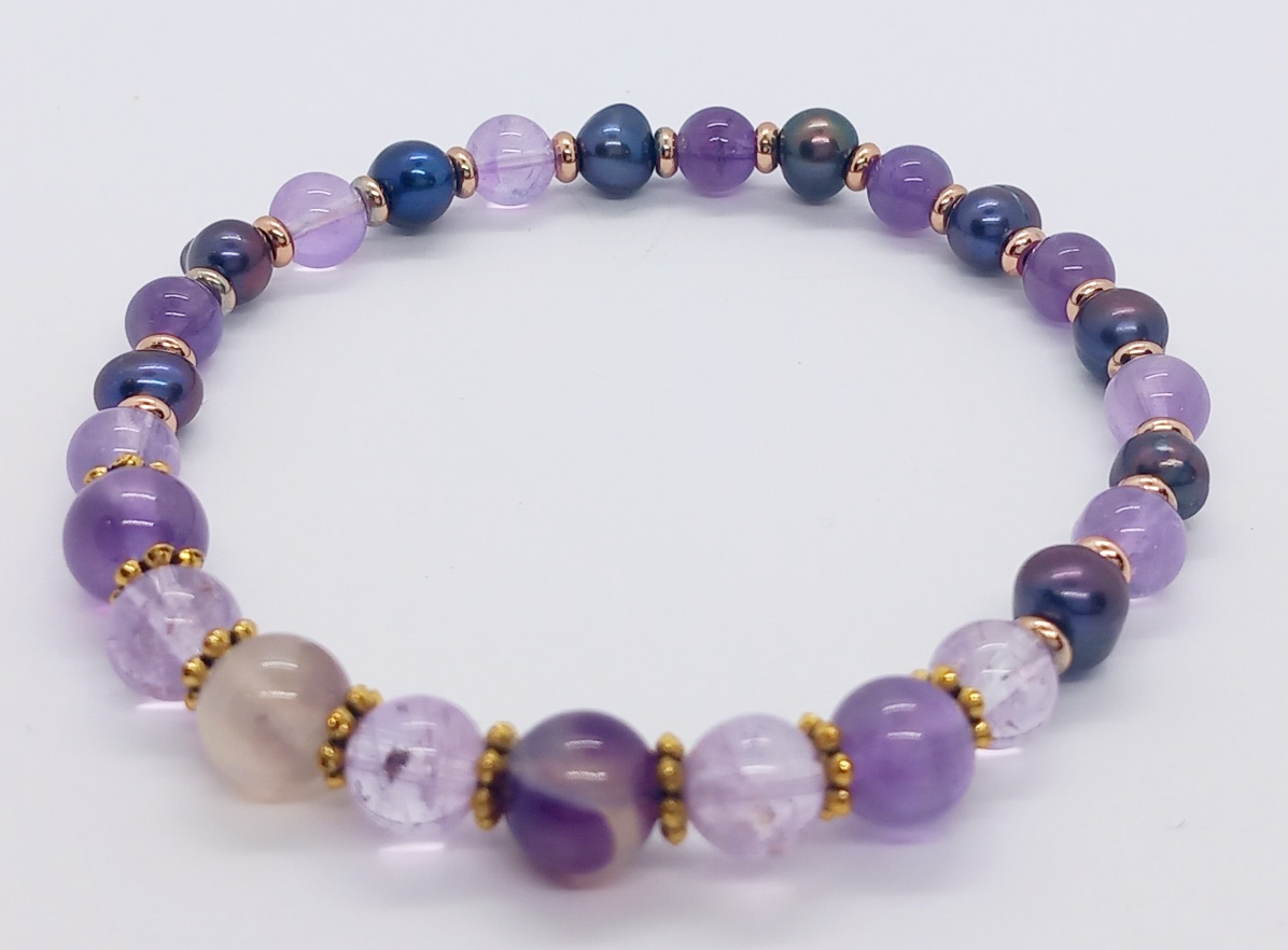 Käsintehty chevron ametisti -rannekorumme voi toimia muistutuksena siitä, että selkeys ja sisäinen visio voivat ohjata sinua myös hämärien hetkien yli.