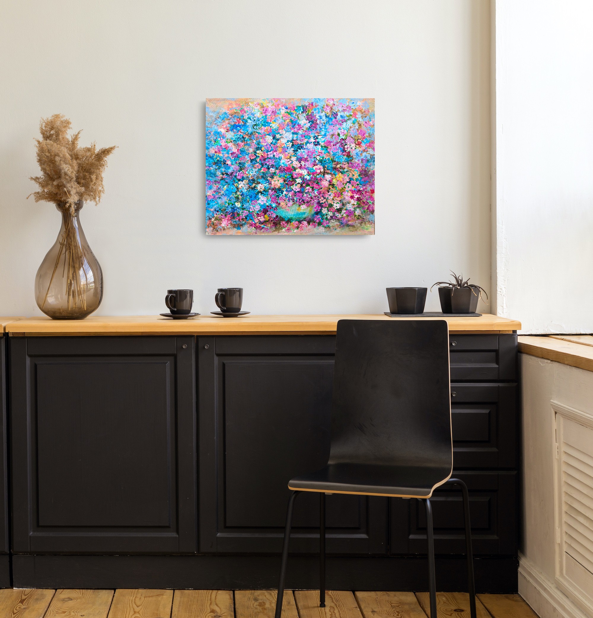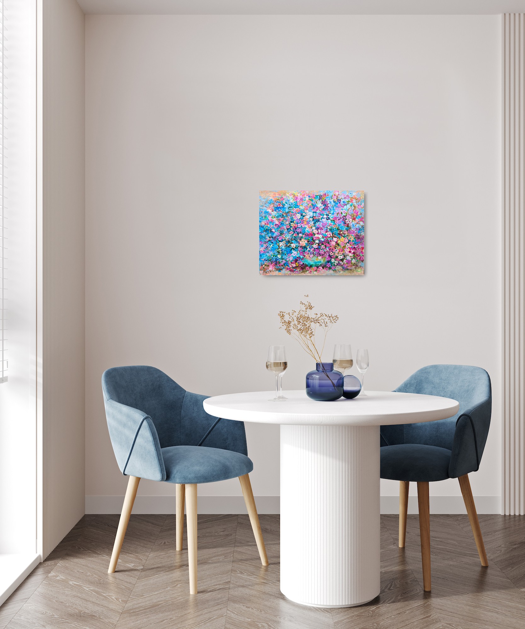 Koko 61 x 50 x 2 (cm) reunat maalattu, ripustusvalmis. Akryyli kankaalle. Postitus sisältyy hintaan.