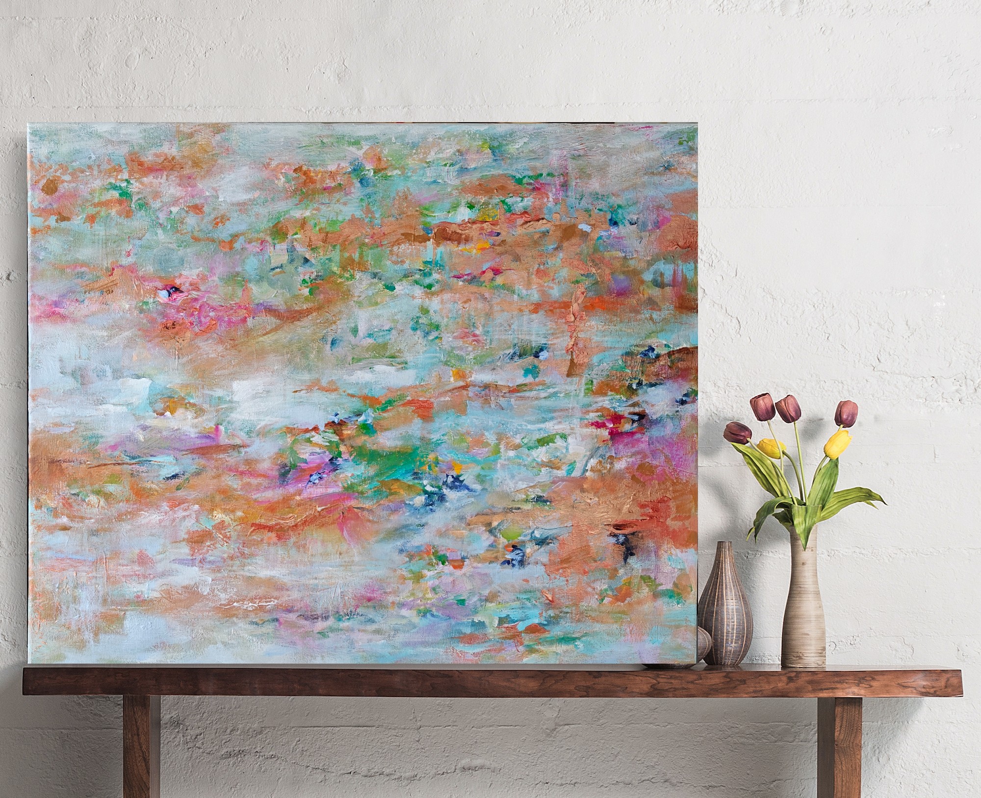Koko 60 x 73, reunat maalattu, ripustusvalmis. Akryyli kankaalle. Postitus sisältyy hintaan.