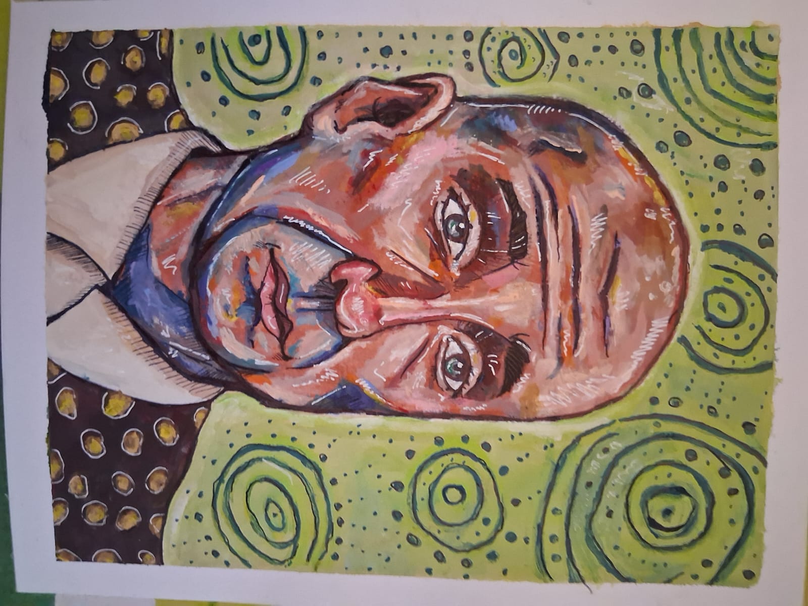 Vesivärimaalaus ja tussi tukevalle paperille. Ei kehyksiä. Mitat 16 x 21 cm.