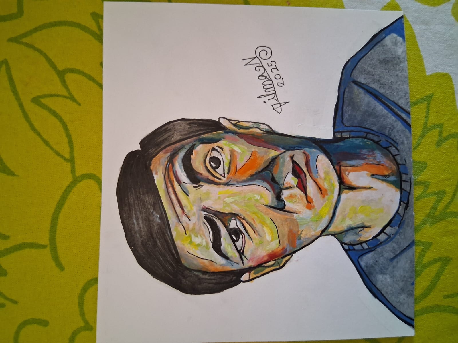 Vesivärimaalaus ja tussi tukevalle paperille. Ei kehyksiä. Mitat 14,5 x 13,5 cm.