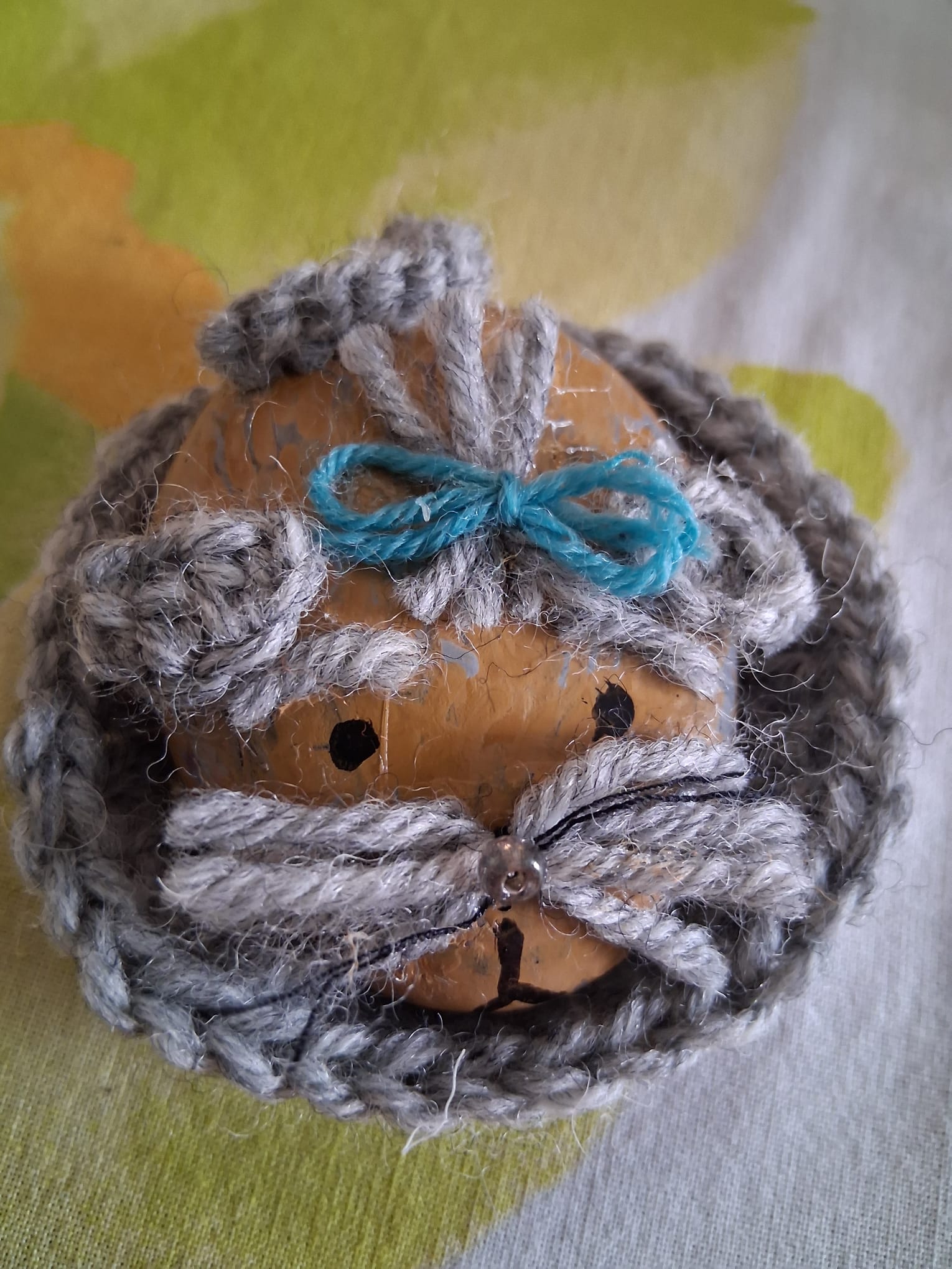 Kämmenlemmikki on helppohoitoinen ja vähään tyytyväinen. Lemmikki mahtuu taskuun, laukkuun tai vaikka työpöydälle. Sopii allergikoille, eikä vaadi paljon. Maalattu kivi, jossa virkatut tehosteet.