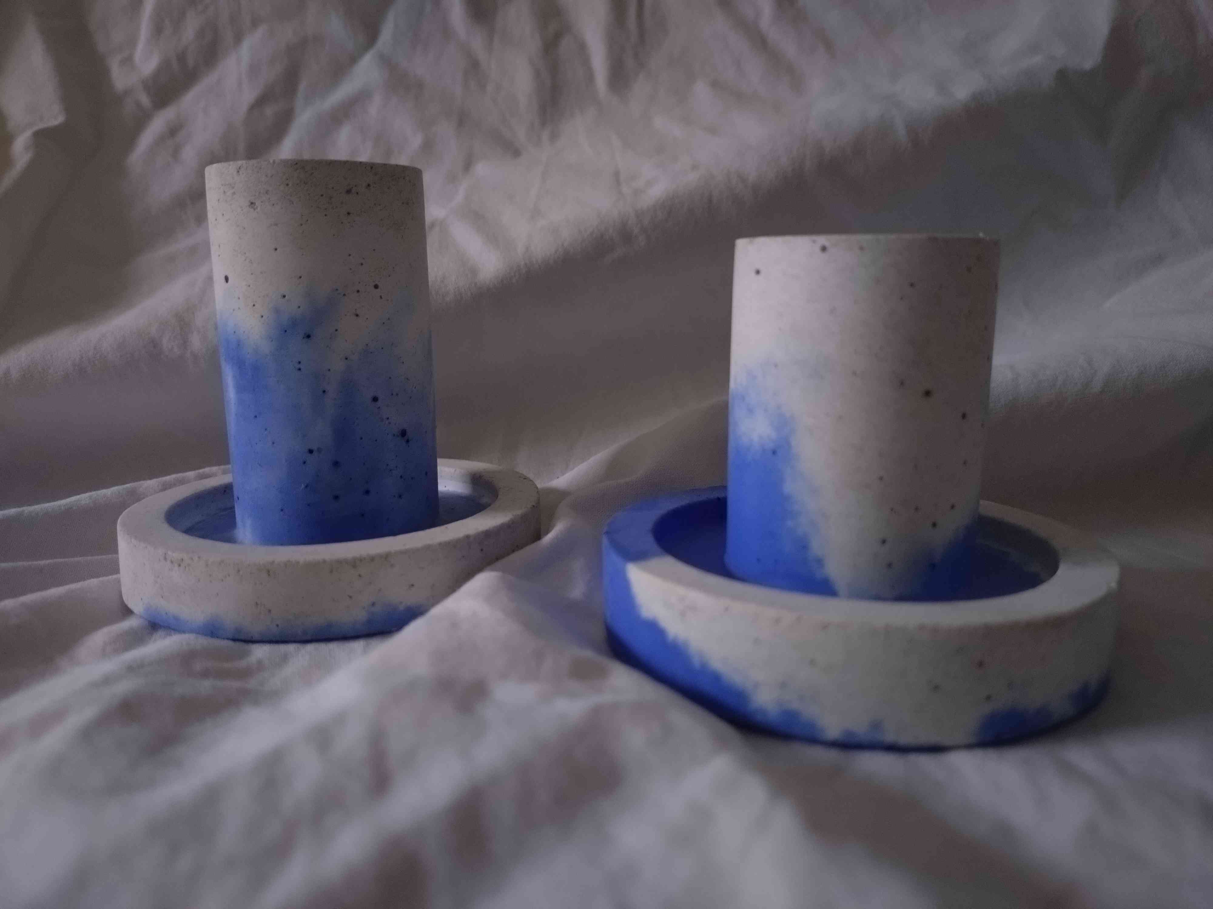 Valkobetoniset ja liukuvärjätyt kynttilänjalat, iso + pieni, Mitat: iso 72 x 72 mm, pieni 72 x 60mm. POSTITUSMAKSU: 5,90 € lisätään loppusummaan kassalla.