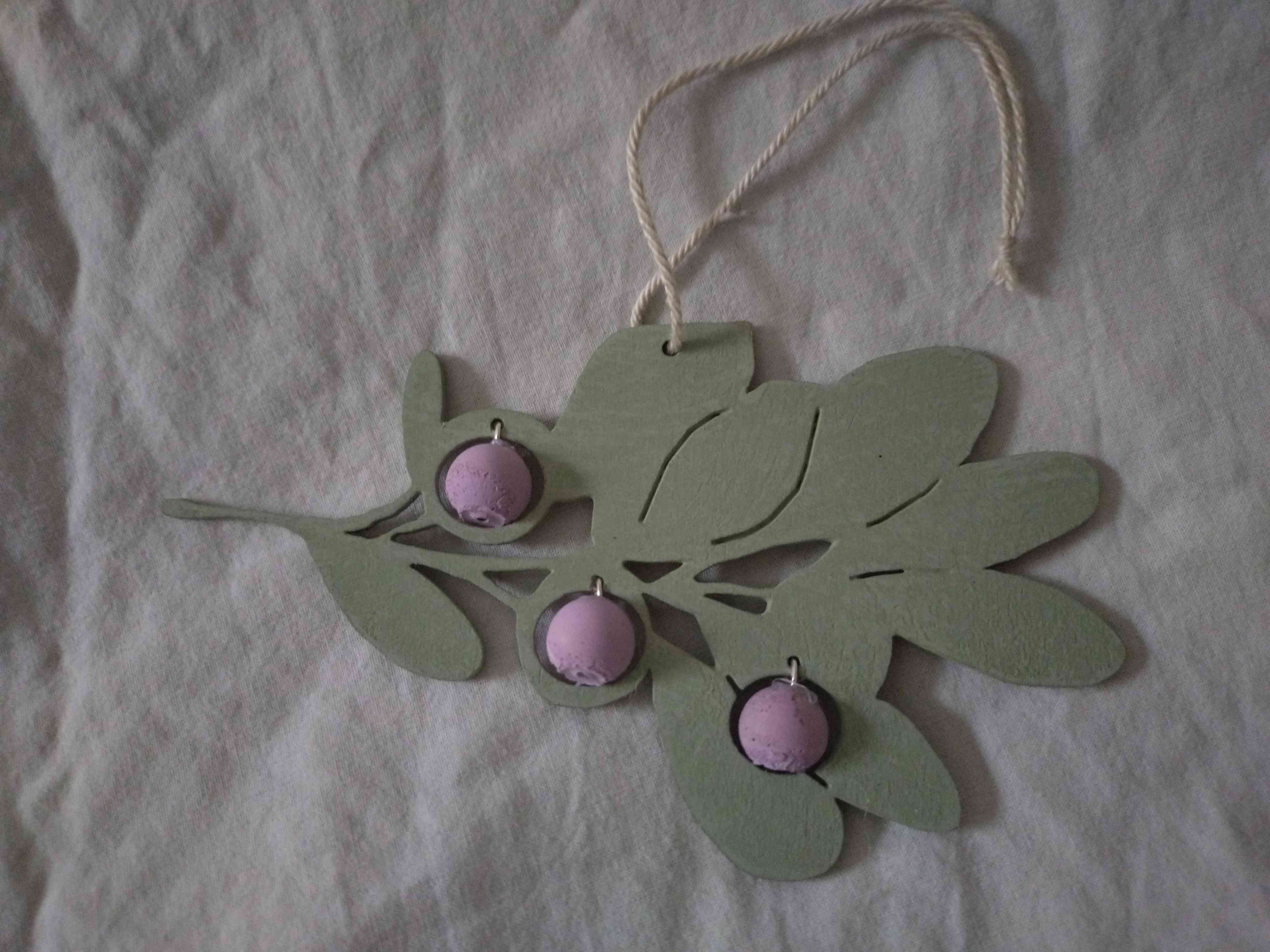 Koivuvanerinen ja valkobetoninen misteli, vaneri kalkkimaalattu. Mitat: n. 135 x 75mm