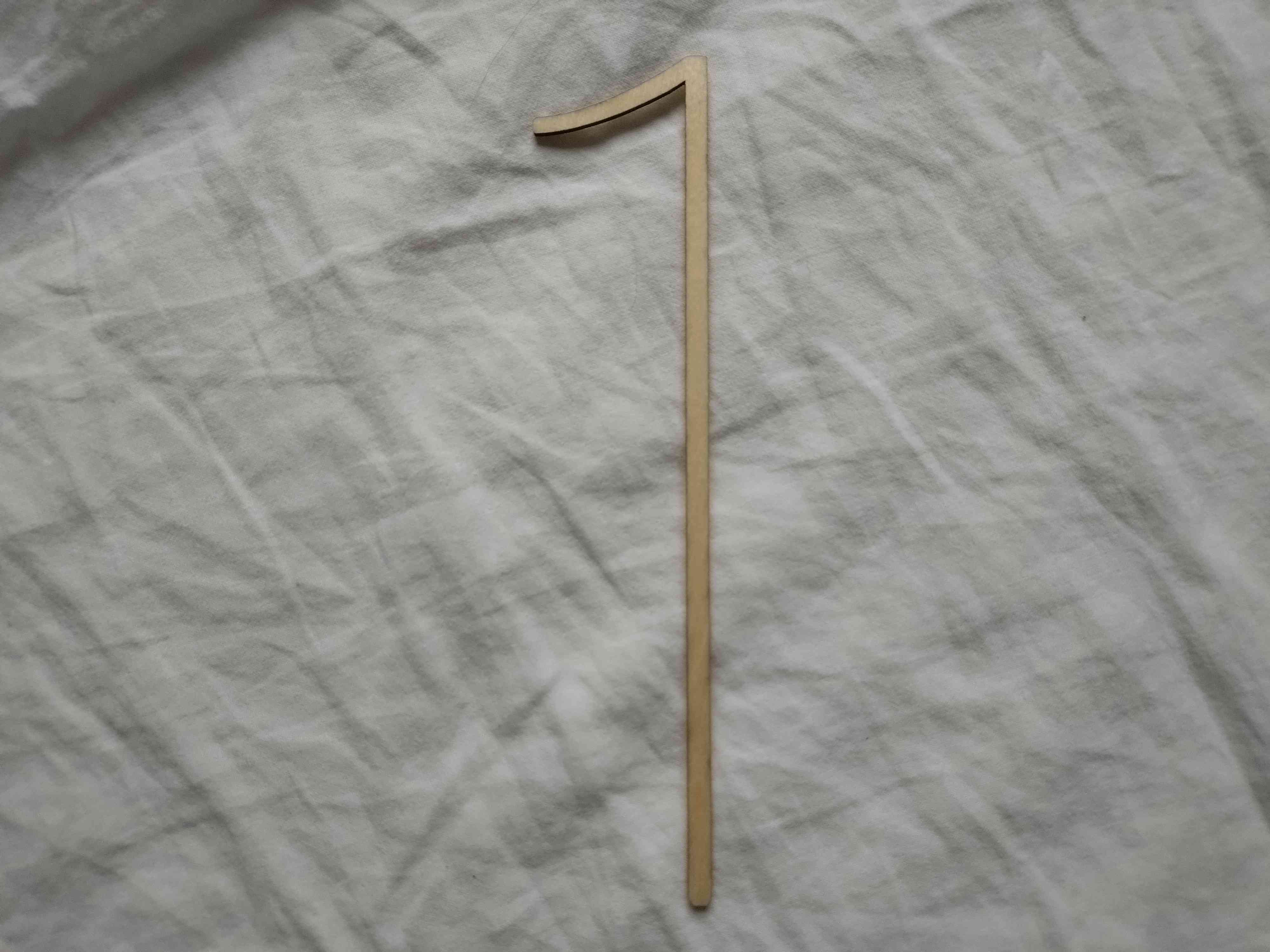 Koivuvanerinen kakkukoriste. Numeron mitta: n. 40 x 80mm. Varsi n. 100mm pitkä.