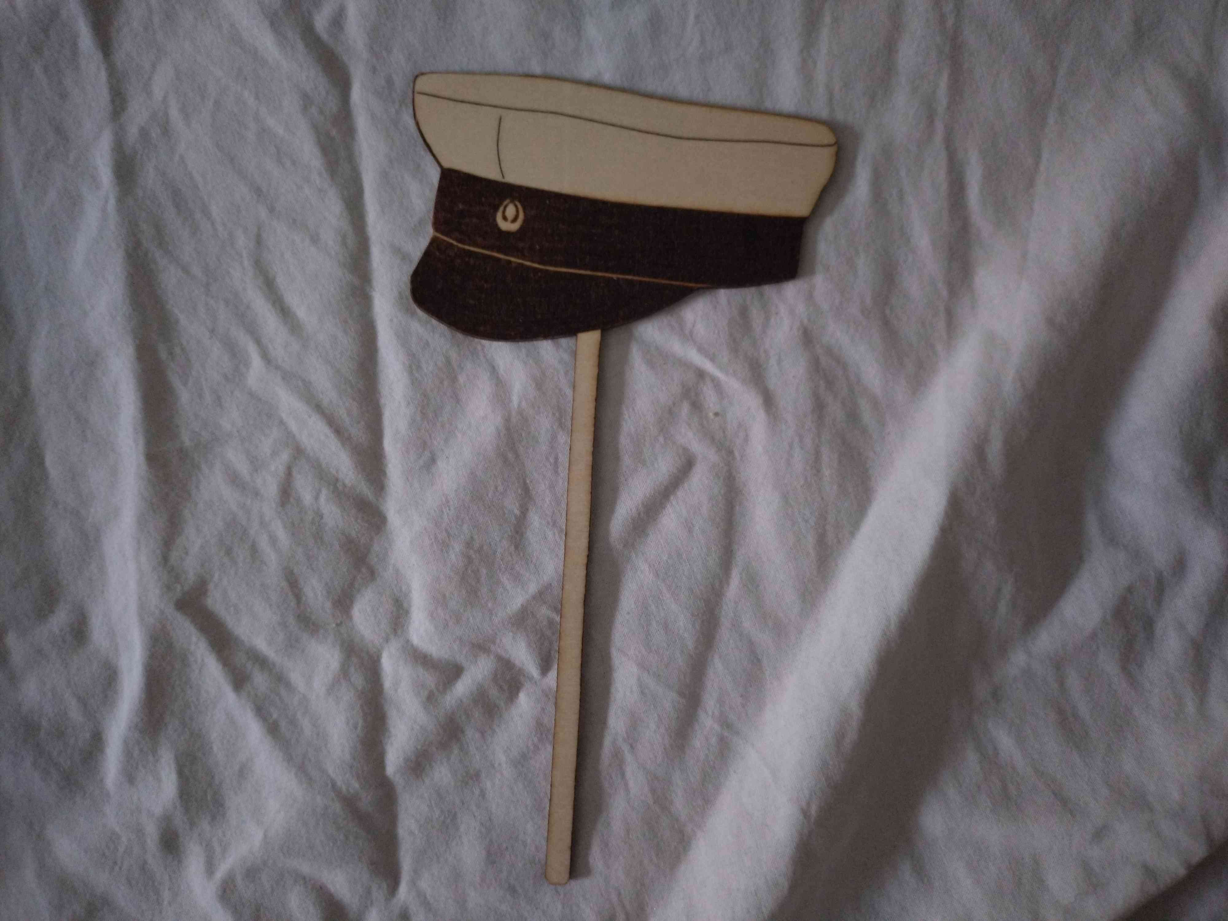 koivuvanerinen kakkukoriste. Koristeen mitta: n. 85 x 52mm. Varsi n. 105mm pitkä