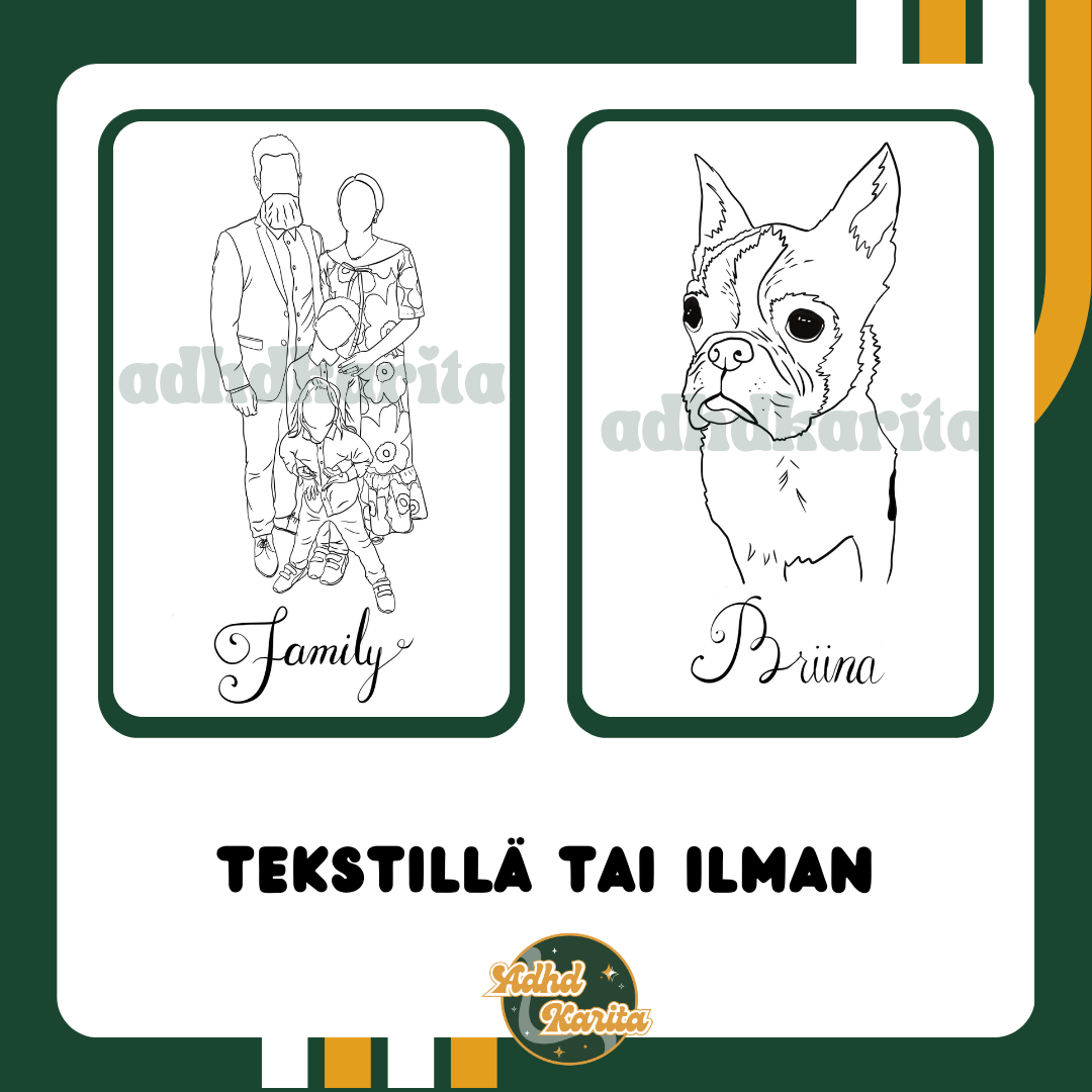 Kun olet saanut tilausvahvistuksen, lähetä minulle sähköpostitse kuva, jonka haluat piirrettävän. Kuvan voi lähettää osoitteeseen adhdkarita(at)gmail.com