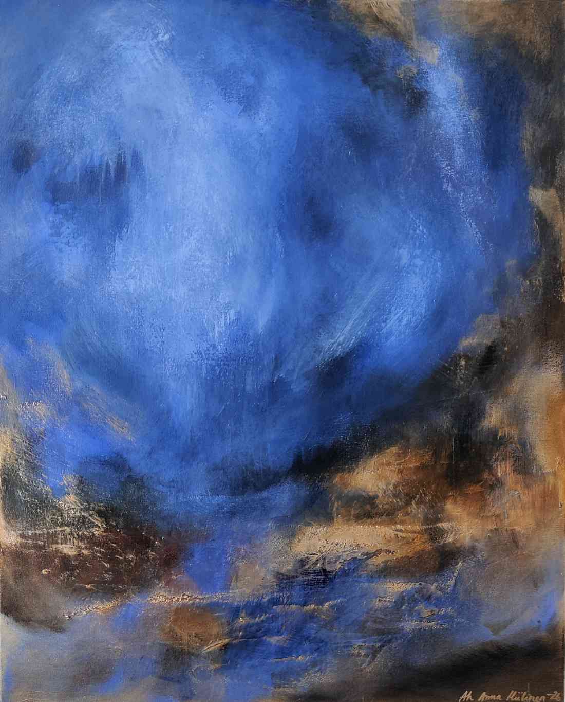 Anna Hiilisen alkuperäinen maalaus/taulu "Uusi aika". Teos on maalattu akryylivärein pingotetulle kankaalle. Teoksen mitat leveys 81cm, korkeus 100cm ja syvyys 2cm.