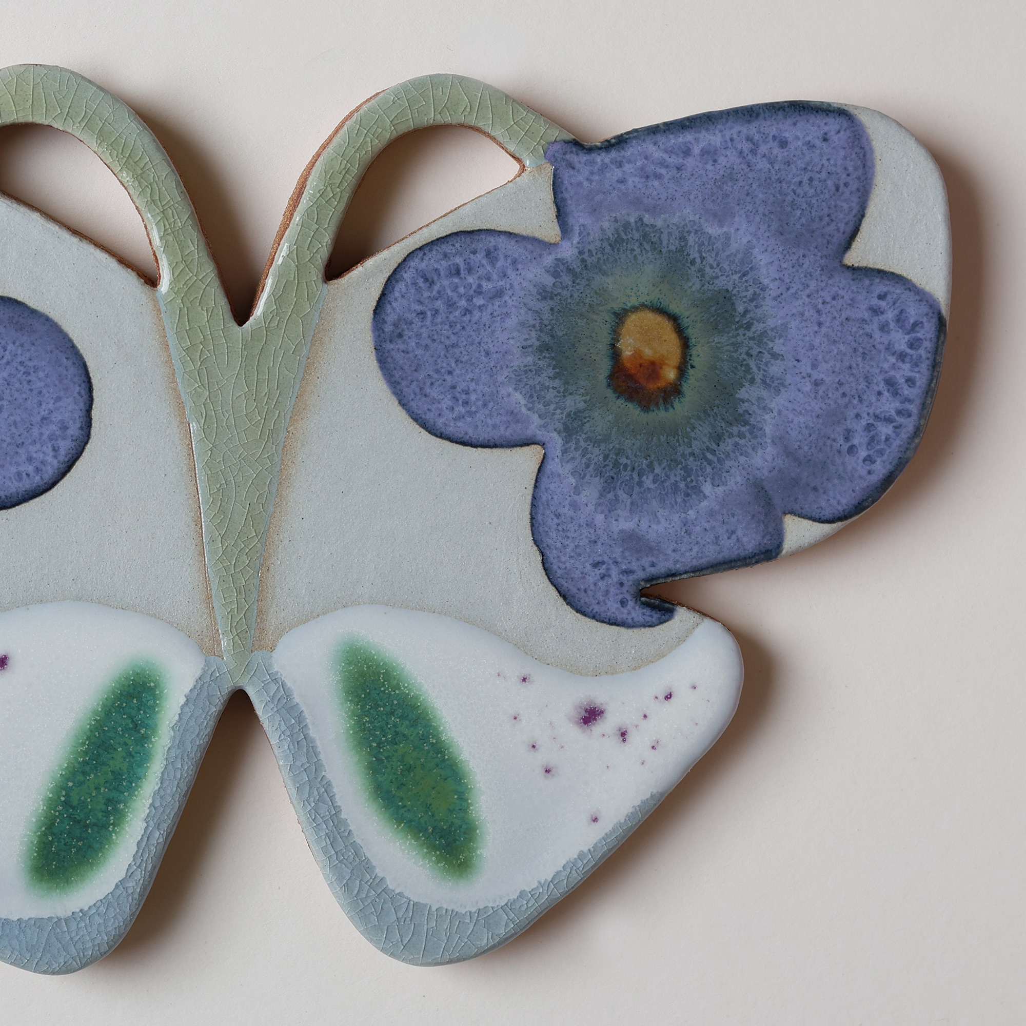 Unique ceramic butterfly relief. Glazed stoneware, signed on the back. Size approx. 25x15x1 cm. Ready to hang with built-in wall mount. Pickup available from my studio in Helsinki (Fredrikinkatu) if requested, or free shipping within Finland. Orders are shipped within one week of purchase. Shipping is currently available within Finland only. Please feel free to contact me regarding international shipping or urgent pickup arrangements from my studio.