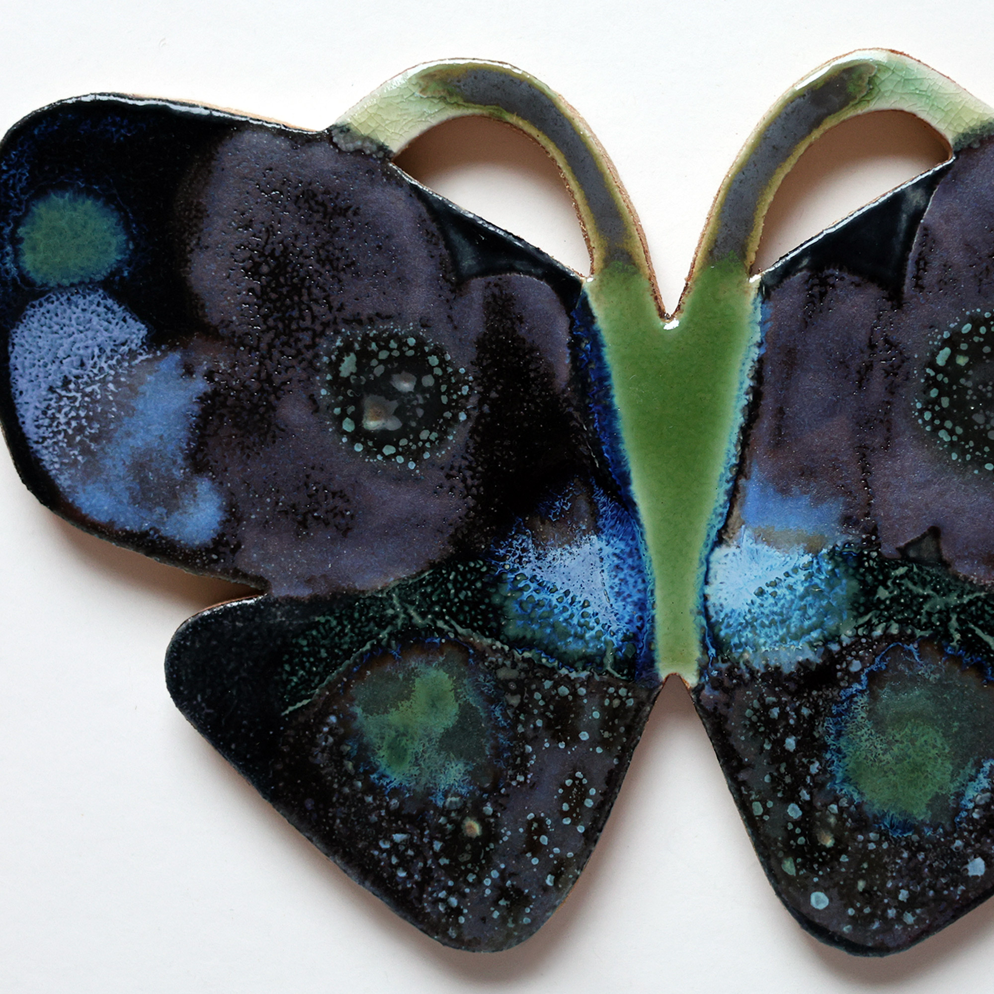 Unique ceramic butterfly relief. Glazed stoneware, signed on the back. Size approx. 25x15x1 cm. Ready to hang with built-in wall mount. Pickup available from my studio in Helsinki (Fredrikinkatu) if requested, or free shipping within Finland. Orders are shipped within one week of purchase. Shipping is currently available within Finland only. Please feel free to contact me regarding international shipping or urgent pickup arrangements from my studio.
