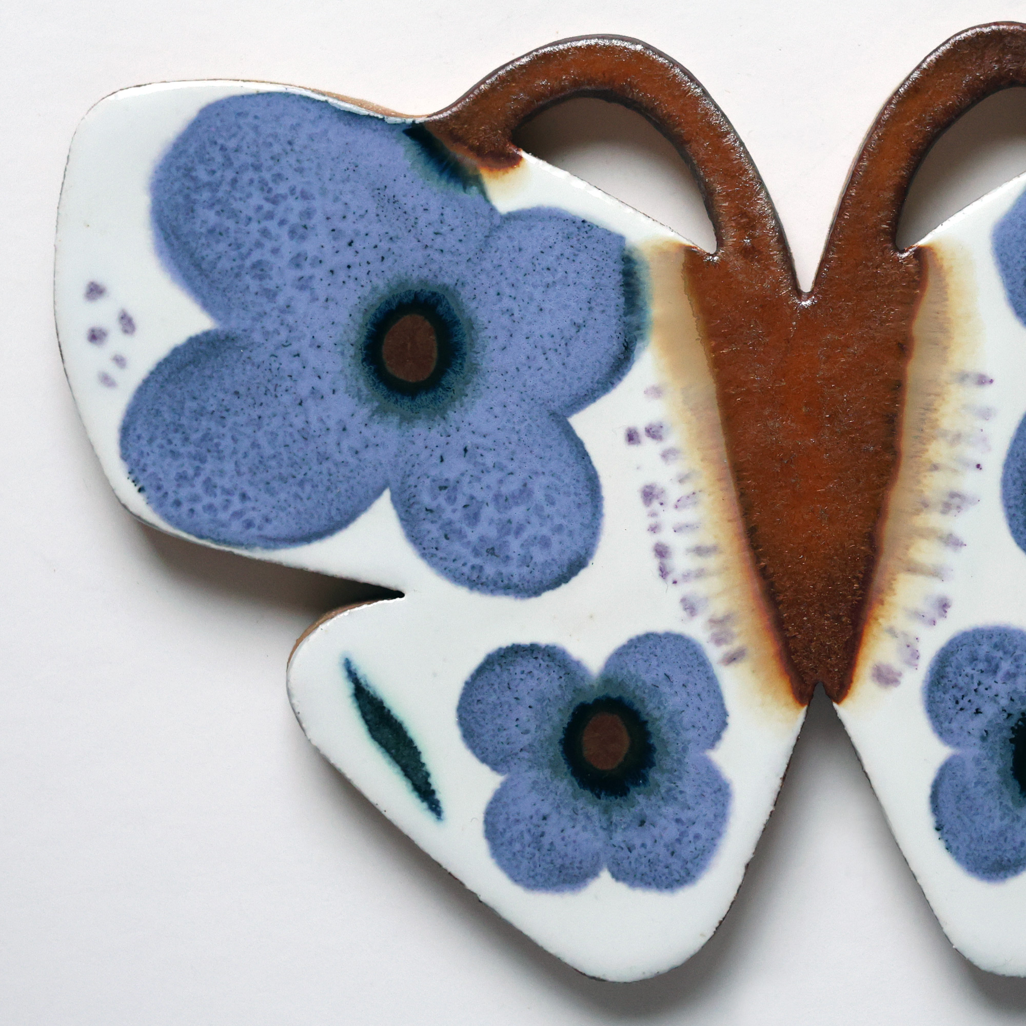 Unique ceramic butterfly relief. Glazed stoneware, signed on the back. Size approx. 25x15x1 cm. Ready to hang with built-in wall mount. Pickup available from my studio in Helsinki (Fredrikinkatu) if requested, or free shipping within Finland. Orders are shipped within one week of purchase. Shipping is currently available within Finland only. Please feel free to contact me regarding international shipping or urgent pickup arrangements from my studio.