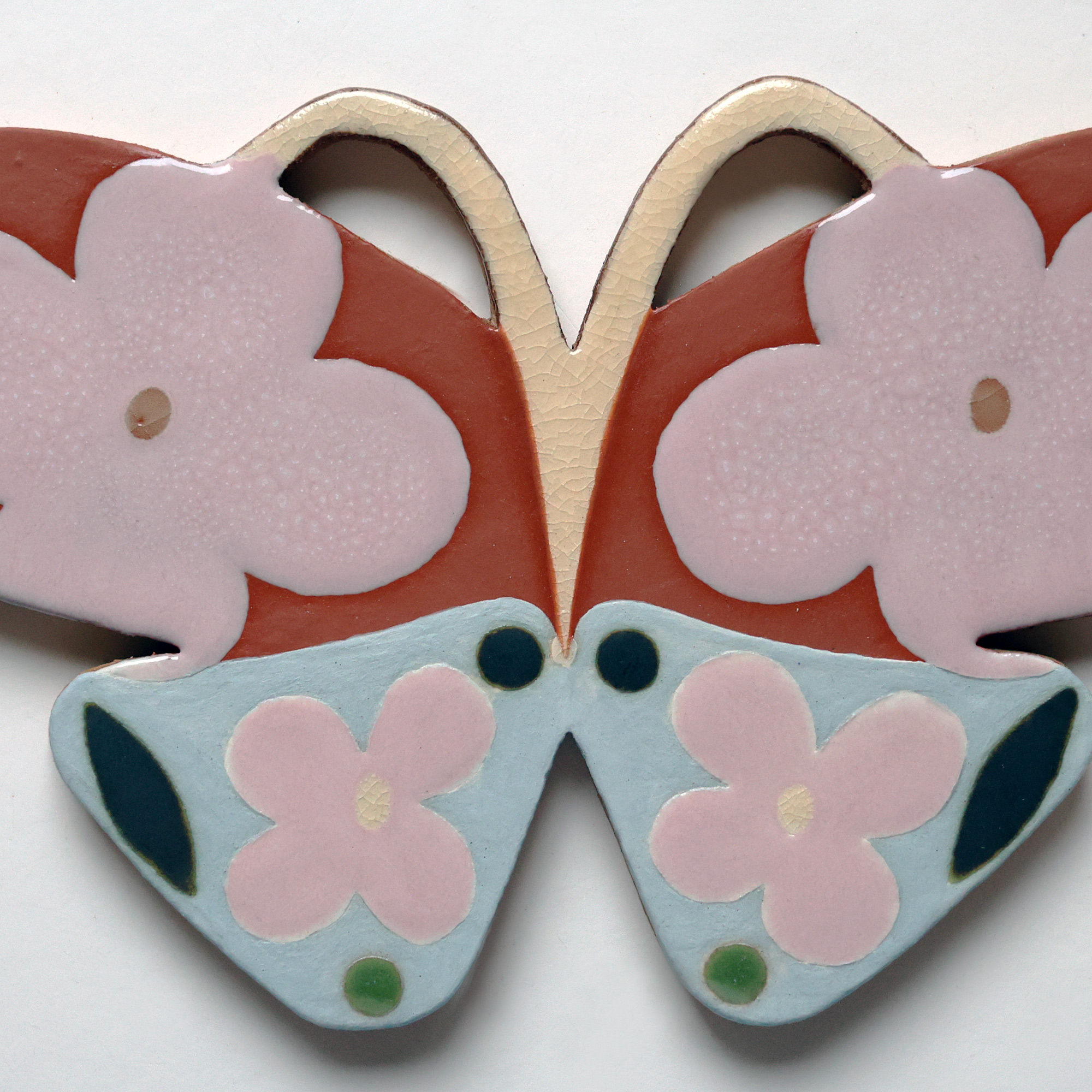 Unique ceramic butterfly relief. Glazed stoneware, signed on the back. Size approx. 25x15x1 cm. Ready to hang with built-in wall mount. Pickup available from my studio in Helsinki (Fredrikinkatu) if requested, or free shipping within Finland. Orders are shipped within one week of purchase. Shipping is currently available within Finland only. Please feel free to contact me regarding international shipping or urgent pickup arrangements from my studio.