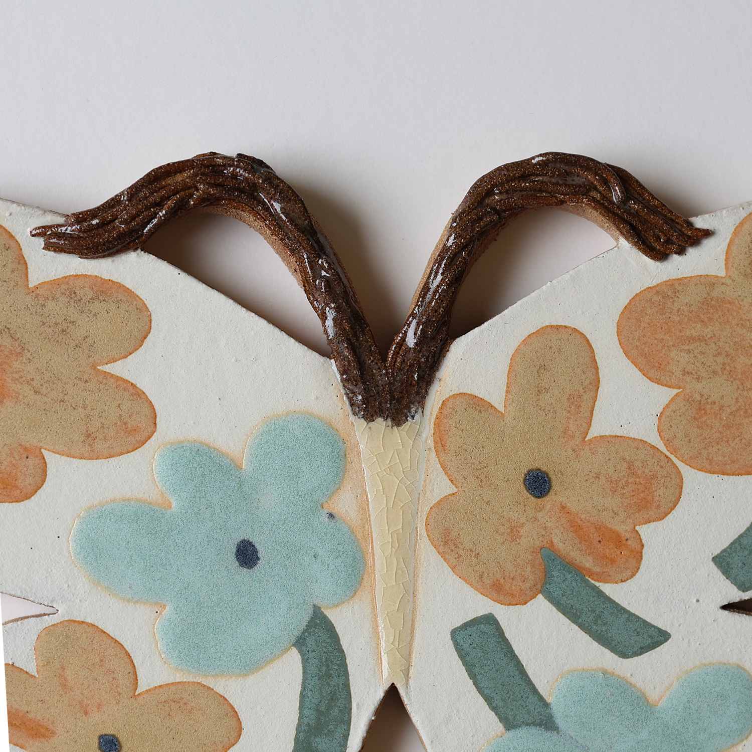 Unique ceramic butterfly relief. Glazed stoneware, signed on the back. Size approx. 25x15x1 cm. Ready to hang with built-in wall mount. Pickup available from my studio in Helsinki (Fredrikinkatu) if requested, or free shipping within Finland. Orders are shipped within one week of purchase. Shipping is currently available within Finland only. Please feel free to contact me regarding international shipping or urgent pickup arrangements from my studio.