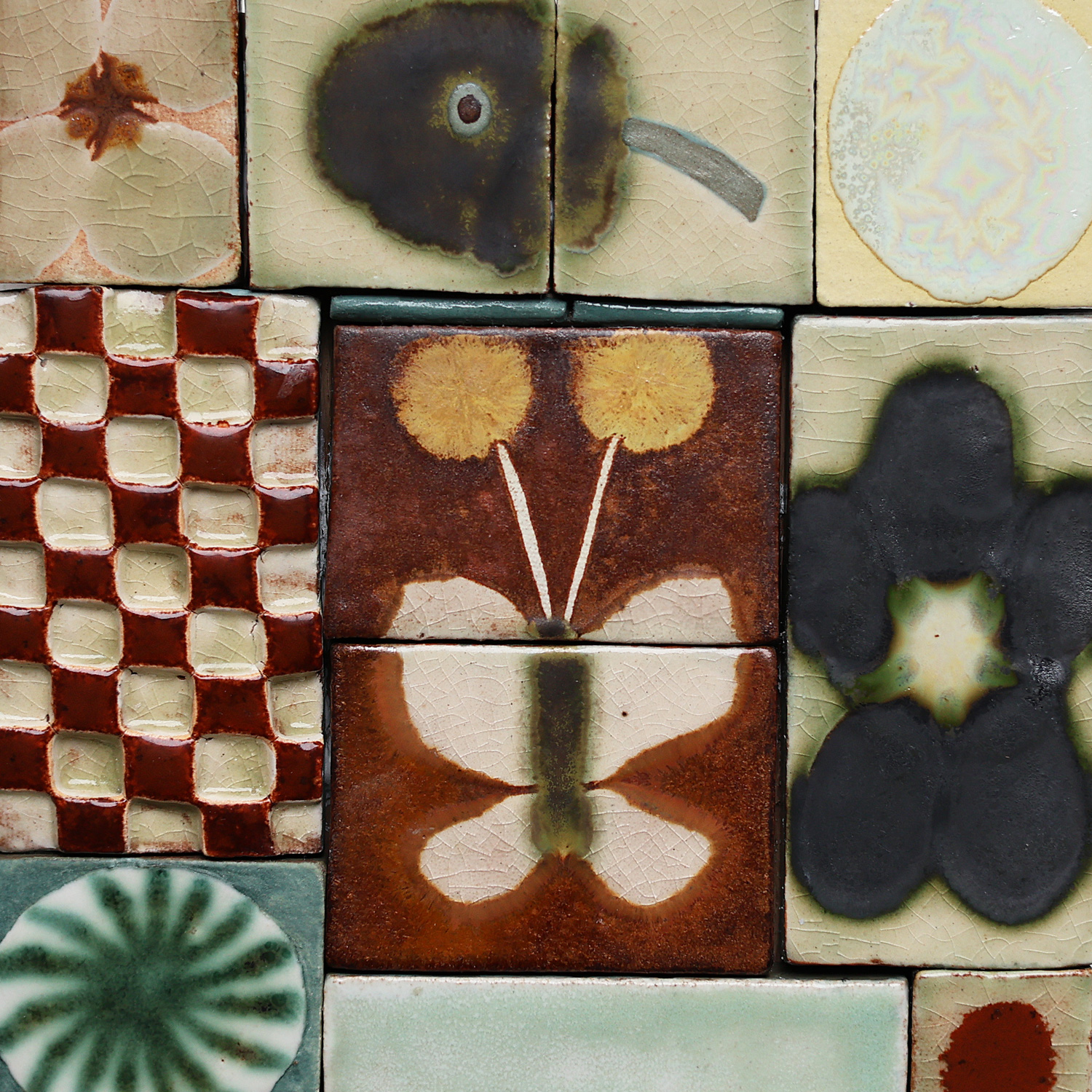 Keraaminen uniikki kollaasiteos. Lasitettua kivitavaraa. Koko n. 16,5 × 15,5 × 3 cm (kehyksen kanssa). Signeeraus takana. Teoksen taustalla on tammikehys, joka irroittaa teoksen seinäpinnasta ja luo kevyesti kelluvan vaikutelman. Nouto työhuoneeltani Fredrikinkadulta Helsingistä erikseen sovittaessa. Postitettaessa teos lähetetään viikon sisällä tilauksesta.