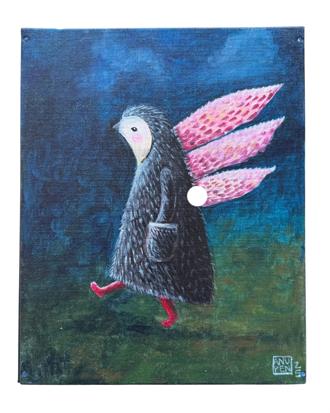 Anu Pensolan maalaus Sielulinnut- sarjasta. Akryyli levylle. Teos on kooltaan 30 x 24 x 4,5 cm