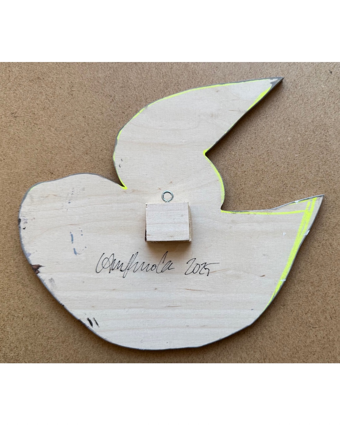 Koivuvanerista muotosahattu, maalattu ja lakattu pöllöreliefi. Ripustusvalmis, ”kelluu” irti seinästä.
