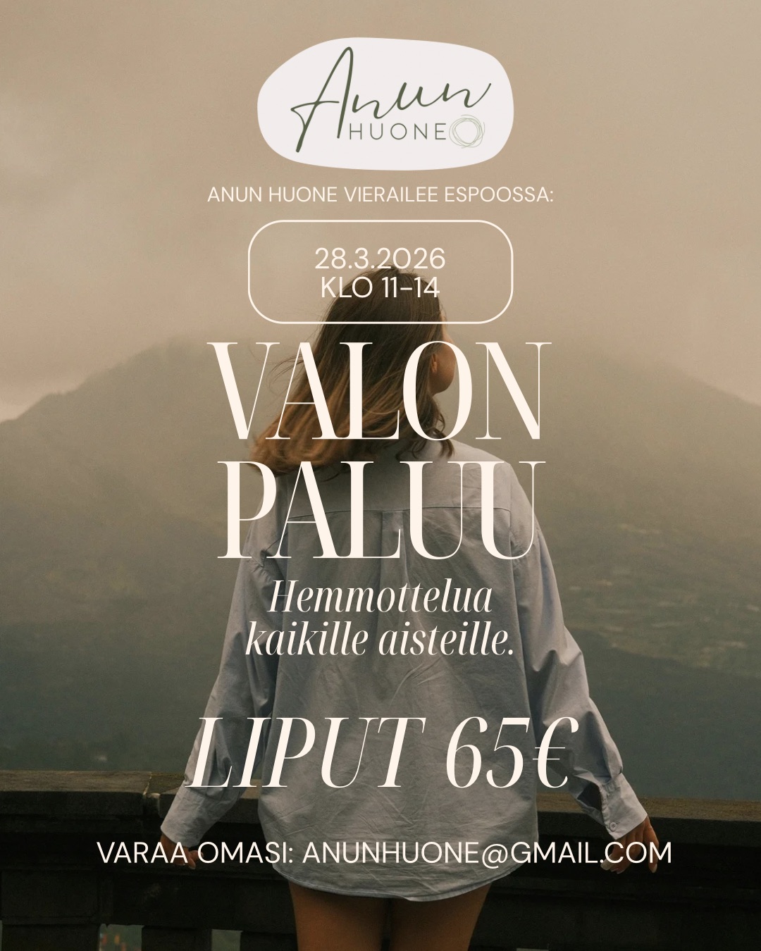 Valon paluu – miniretriitti alkaa Anu Pensolan syvärentouttavalla meditaatio- ja äänimatkalla. Anun ohjaama kehotietoisuusmeditaatio on liike- ja mielikuvaharjoitus, joka auttaa vapauttamaan kehon ja mielen jännitystiloja ja edesauttaa syvärentoutumista äänimaljamatkan aikana.
