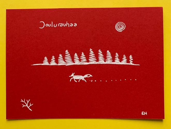 Käsinpiirretty kortti, koko A6, punainen pohja