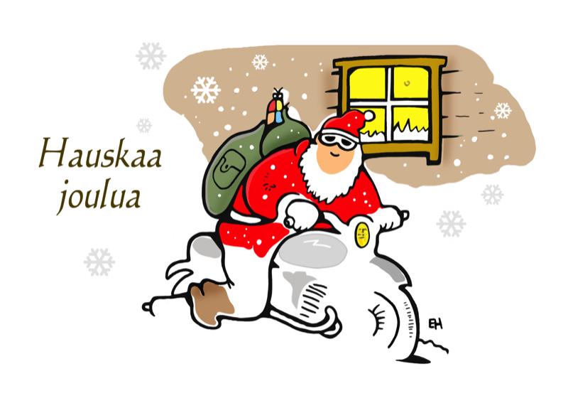 Painettu joulukortti "Moottoritonttu"