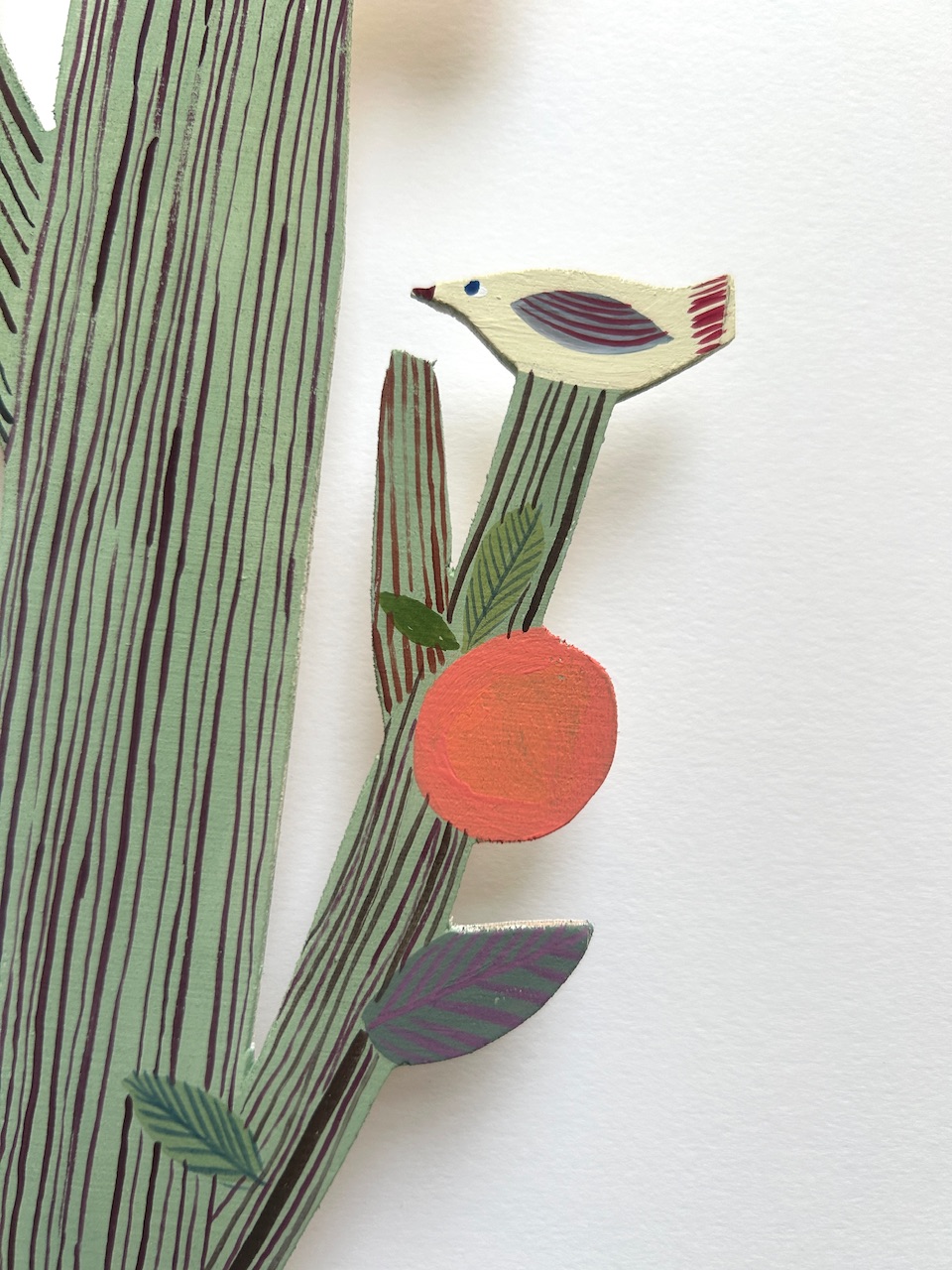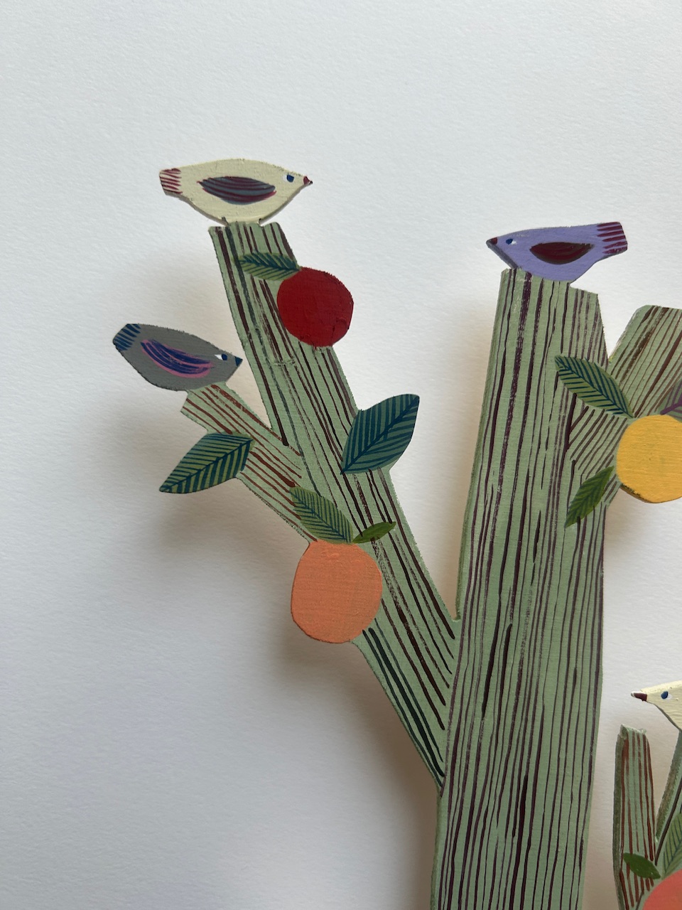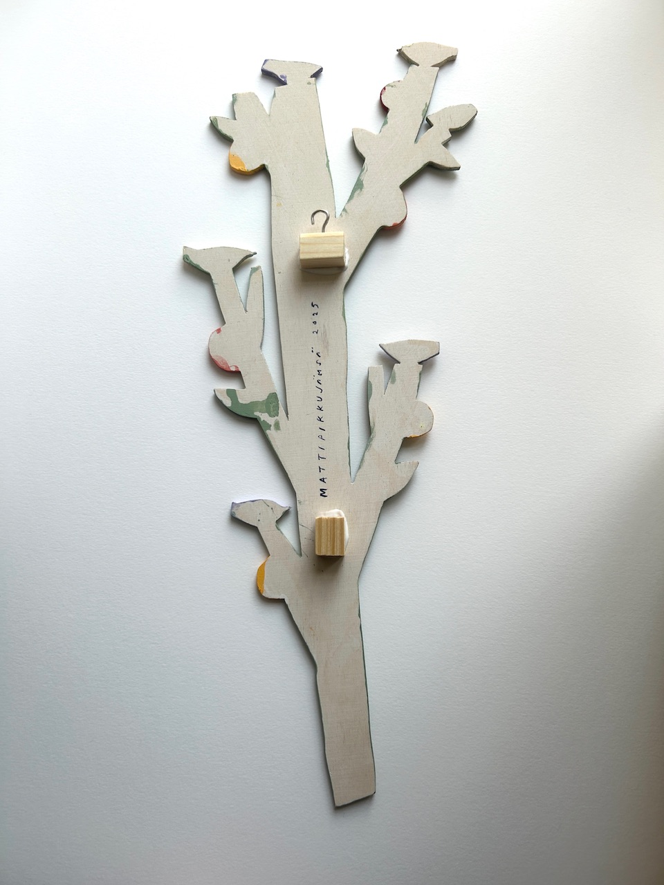 Seinäreliefi / Wall relief Akryyliväri vanerille. Koko K41cm, L17cm. Signeerattu. Takana seinäkiinnike. Acrylic color on plywood. Signed. Width 17cm, height 41cm