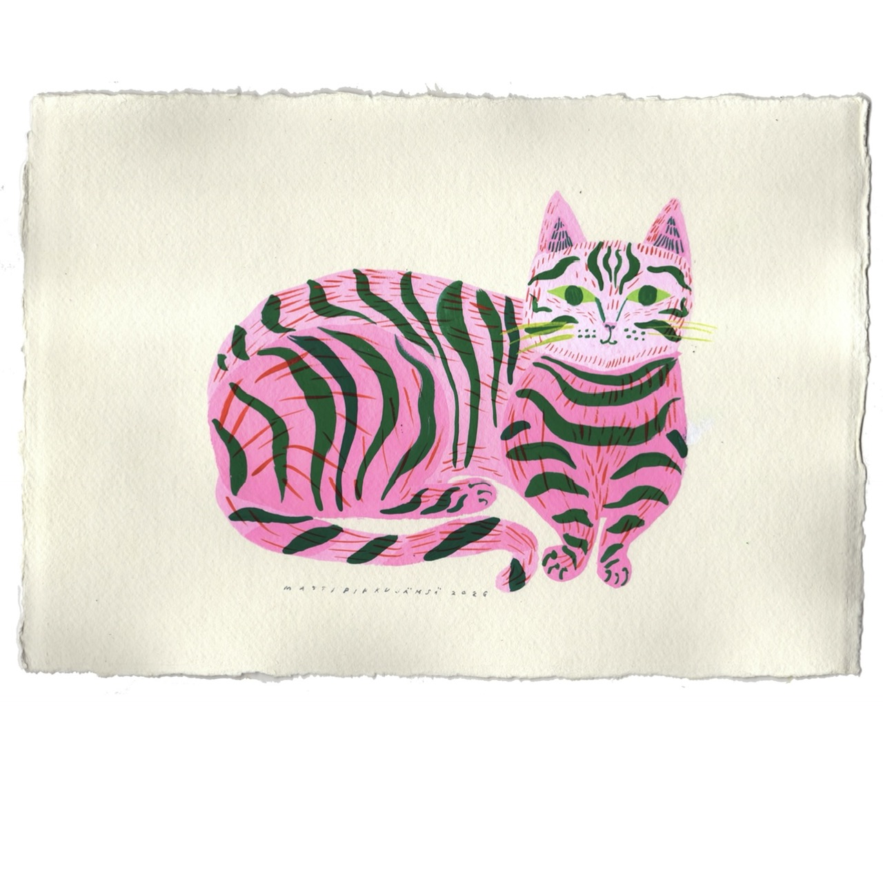 Akryyliväri 600g käsintehdylle intialaiselle puuvillapaperille. Koko 30x20cm. Signeerattu. Acrylic color on 600g handmade indian cotton paper. Size 30x20cm. Signed.