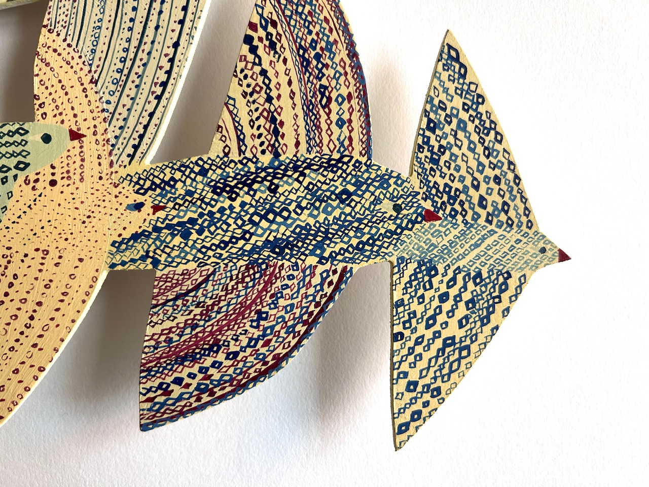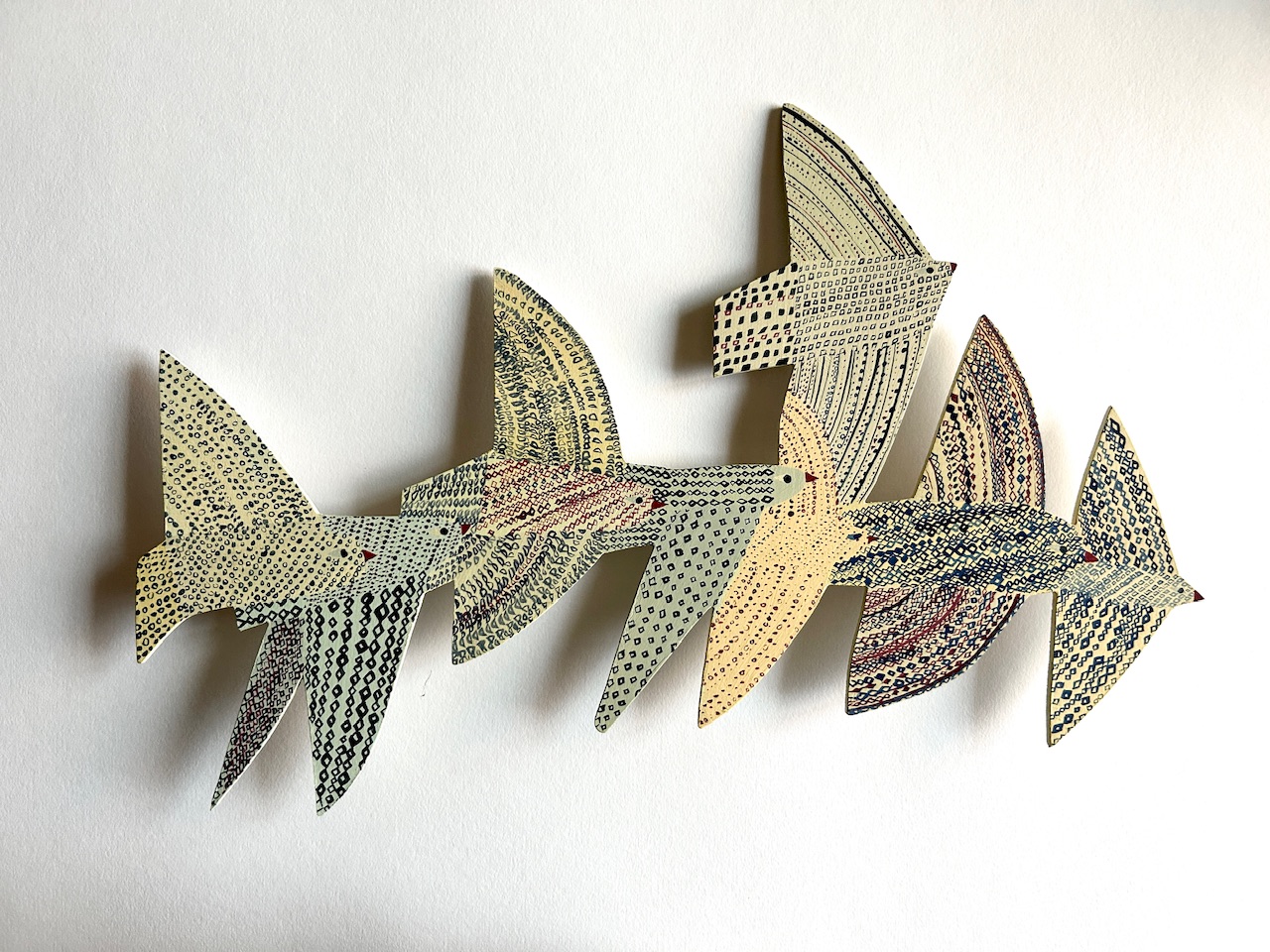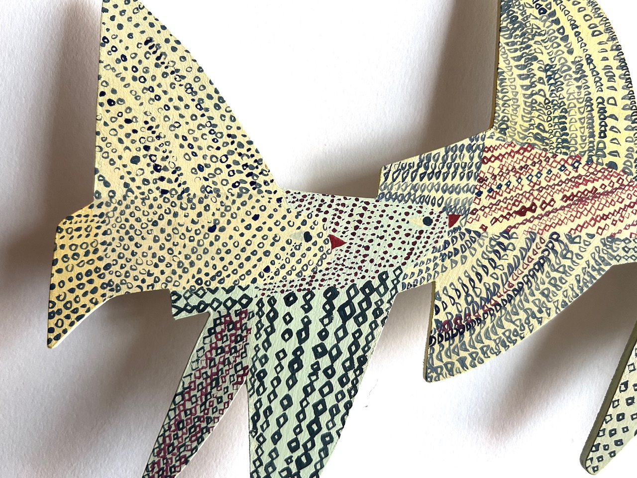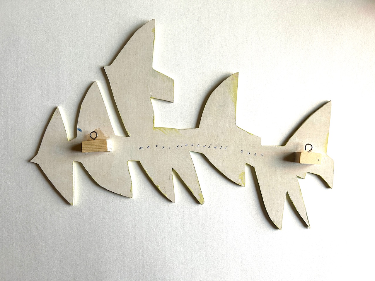 Seinäreliefi / Wall relief Akryyliväri vanerille, L40cm, K20cm. Signeerattu. Takana seinäkiinnike / Acrylic color on plywood, Signed. Width 40cm, height 20cm