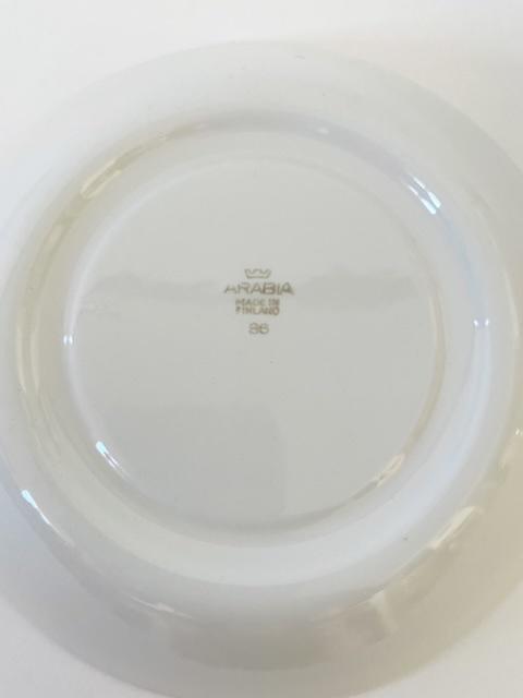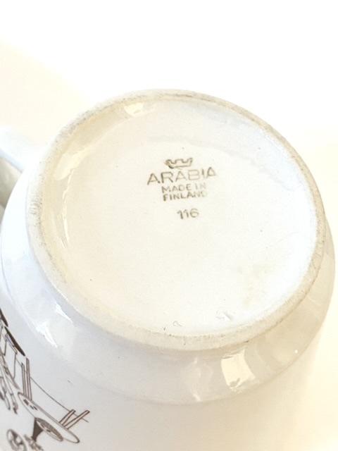 Designed by Raija Uosikkinen. In production end of 1950’s. Size: Cup h. 90mm d. 110mm. Saucer d. 167mm. Very good condition, light brown line on the handle, under glaze, check the photo.