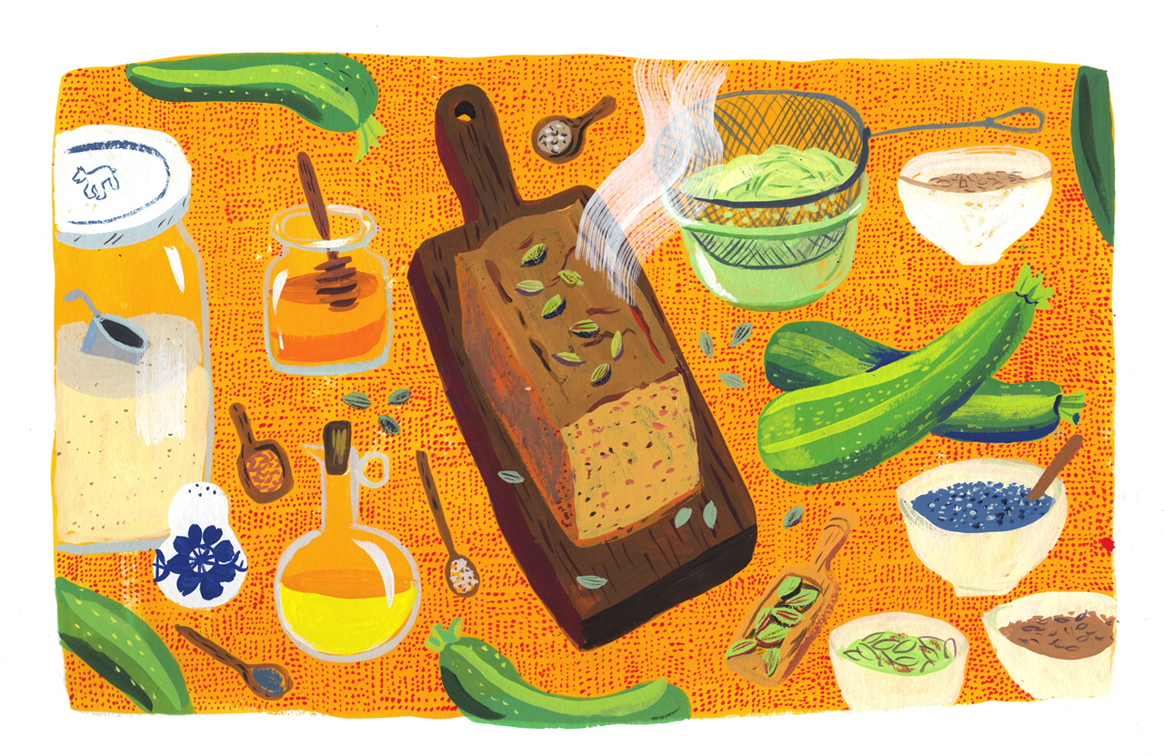 Kuvitusoriginaali Glorian ruoka ja viini-lehteen. Akryyliväri paperille, 42cm x 26cm / Original illustration, acrylic color on paper, size 42cm x 26cm. Signed.