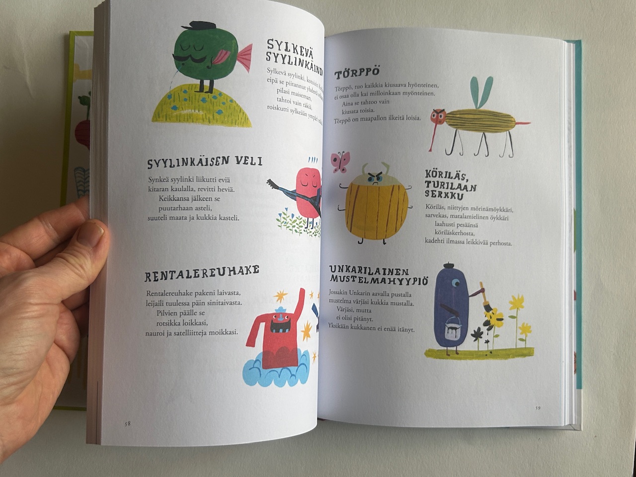 Hauskoja runoja ja riimejä kaikenikäisille. Mainioita kuvauksia kaikenkarvaisista otuksista ja ihmisistä!