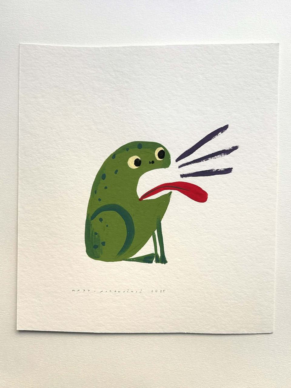 Kuvitusoriginaali kirjaan Hilla ja muutosten kesä, Vinhan kustantamo 2026) Akryyliväri 500g paperille. Koko 25x26cm. Acrylic color on 500g paper. Size 25x26cm.
