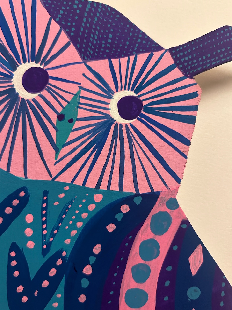 Seinäreliefi / Wall relief Akryyliväri vanerille. Koko K31cm, L21cm. Signeerattu. Takana seinäkiinnike. Acrylic color on plywood. Signed. Width 21cm, height 31cm