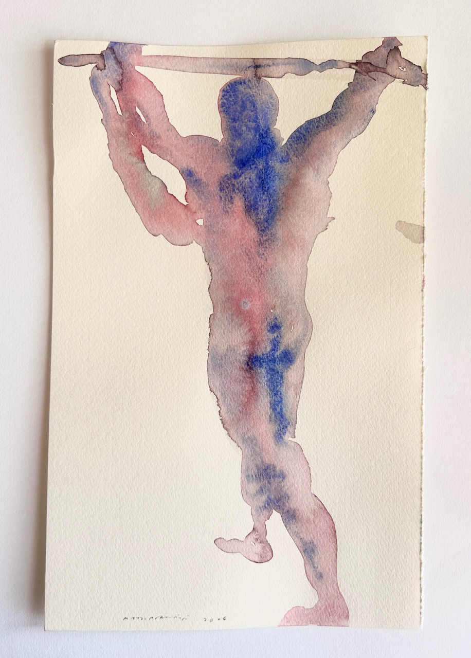 Akvarelli ja muste 300g akvarellipaperille, koko 200 x 318 mm. Watercolor and ink on water color paper. Size 200 x 318 mm.