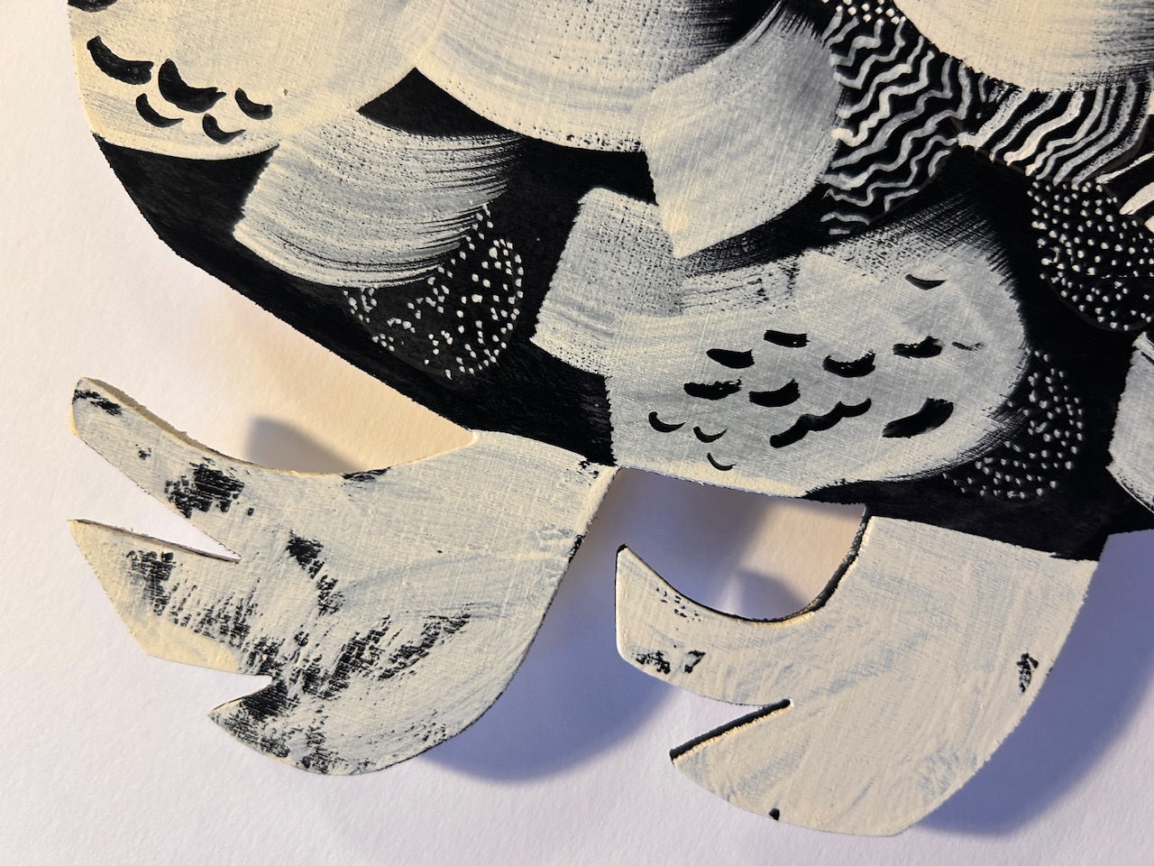 Akryyliväri vanerille, L37cm, K21cm. Signeerattu. Takana seinäkiinnike. Acrylic color on plywood, W37cm, H21cm. Signed. On the back: wooden block with hook.