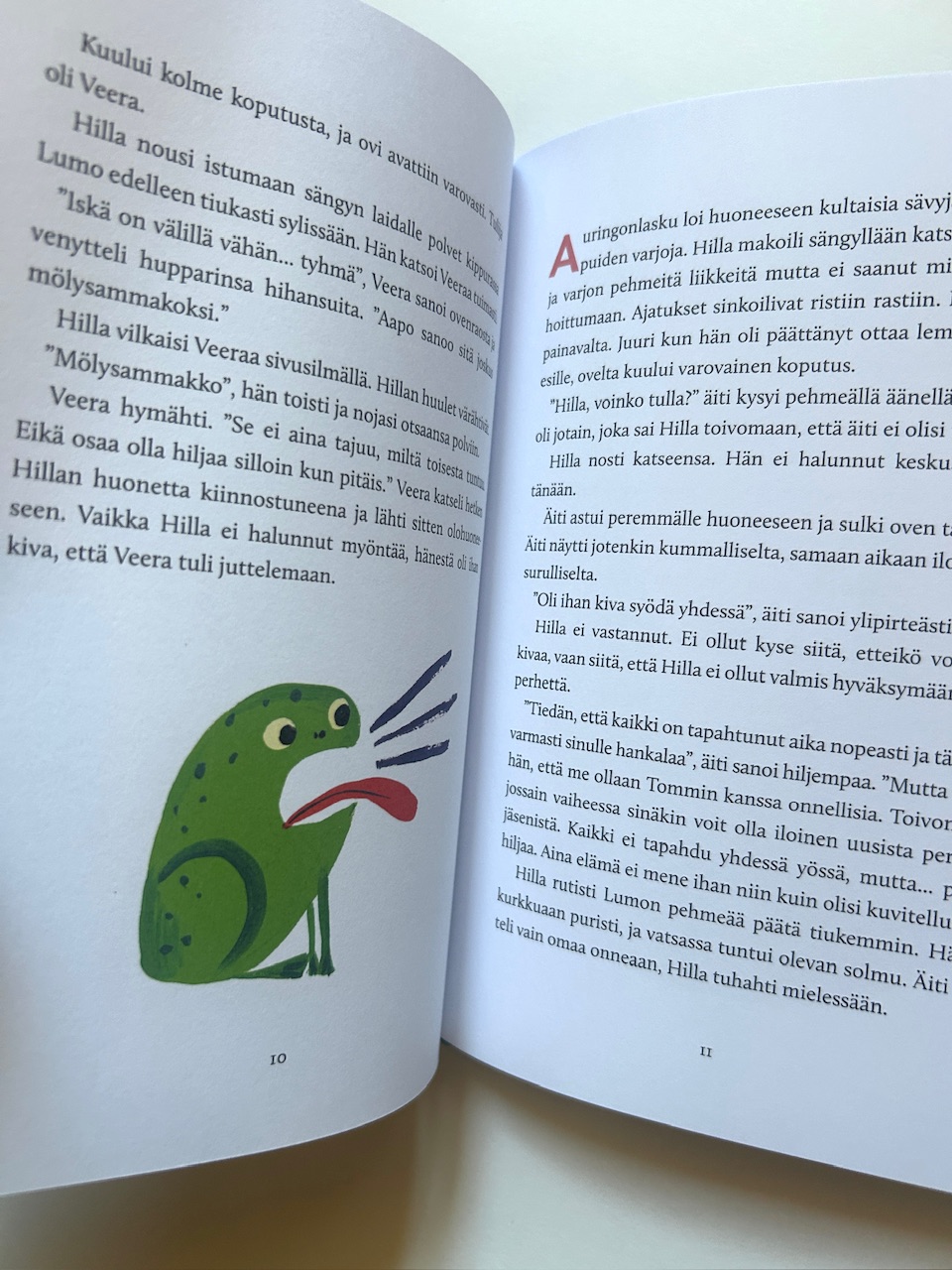 Hilla on 6-vuotias tyttö, jonka vanhemmat ovat eronneet vuosi sitten. Hillan äidillä on uusi mies Tommi, jonka kanssa äiti ja Hilla ovat muuttaneet juuri uuteen kotiin. Joka toinen viikonloppu siellä asuvat myös Tommin kaksi lasta, viidesluokkalainen Veera ja yläkoulua käyvä Aapo. Uusi perhe tuntuu Hillasta vaikealta. Hän haluaisi takaisin vanhan elämänsä, jolloin äiti ja isä olivat vielä yhdessä. Hillalla on mummilta saatu vanha viisas pehmopöllö Lumo, joka kuiskii Hillalle, auttaa häntä hankalissa tunteissa ja antaa toivoa: ”Tommi, Veera ja Aapo saattavat olla ihan mukavia tyyppejä. Anna vain kaikelle vähän aikaa.” Miten Hillan käy? Auttaako aika?