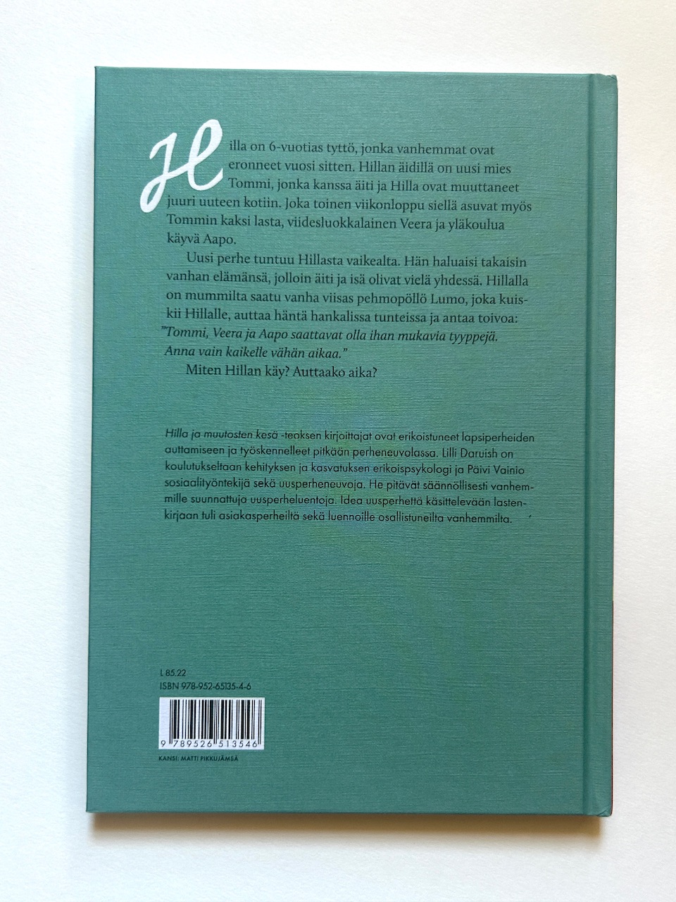 Hilla ja muutosten kesä on lapselle ääneen luettava kuvakirja, jossa kivan tarinan avulla käsitellään uusperheen arkea. Vastaavaa kirjaa, jossa lapsiperheammattilaiset kirjoittavat suoraan lapsille, ei vielä markkinoilla ole. Teoksen kirjoittajat ovat erikoistuneet lapsiperheiden auttamiseen ja työskennelleet pitkään perheneuvolassa.