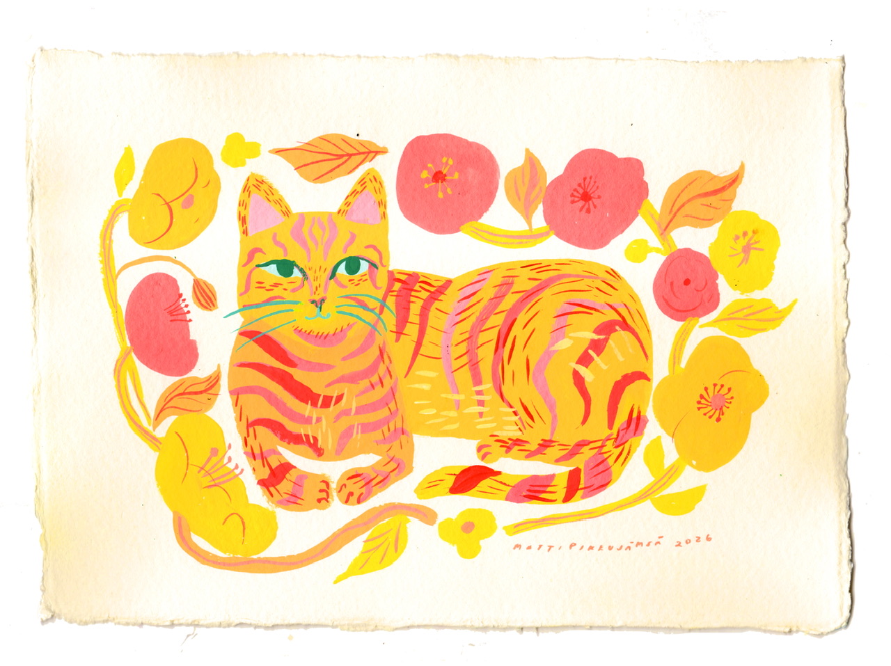 Akryyliväri 600g käsintehdylle intialaiselle puuvillapaperille. Koko 30x20cm. Signeerattu. Acrylic color on 600g handmade indian cotton paper. Size 30x20cm. Signed.